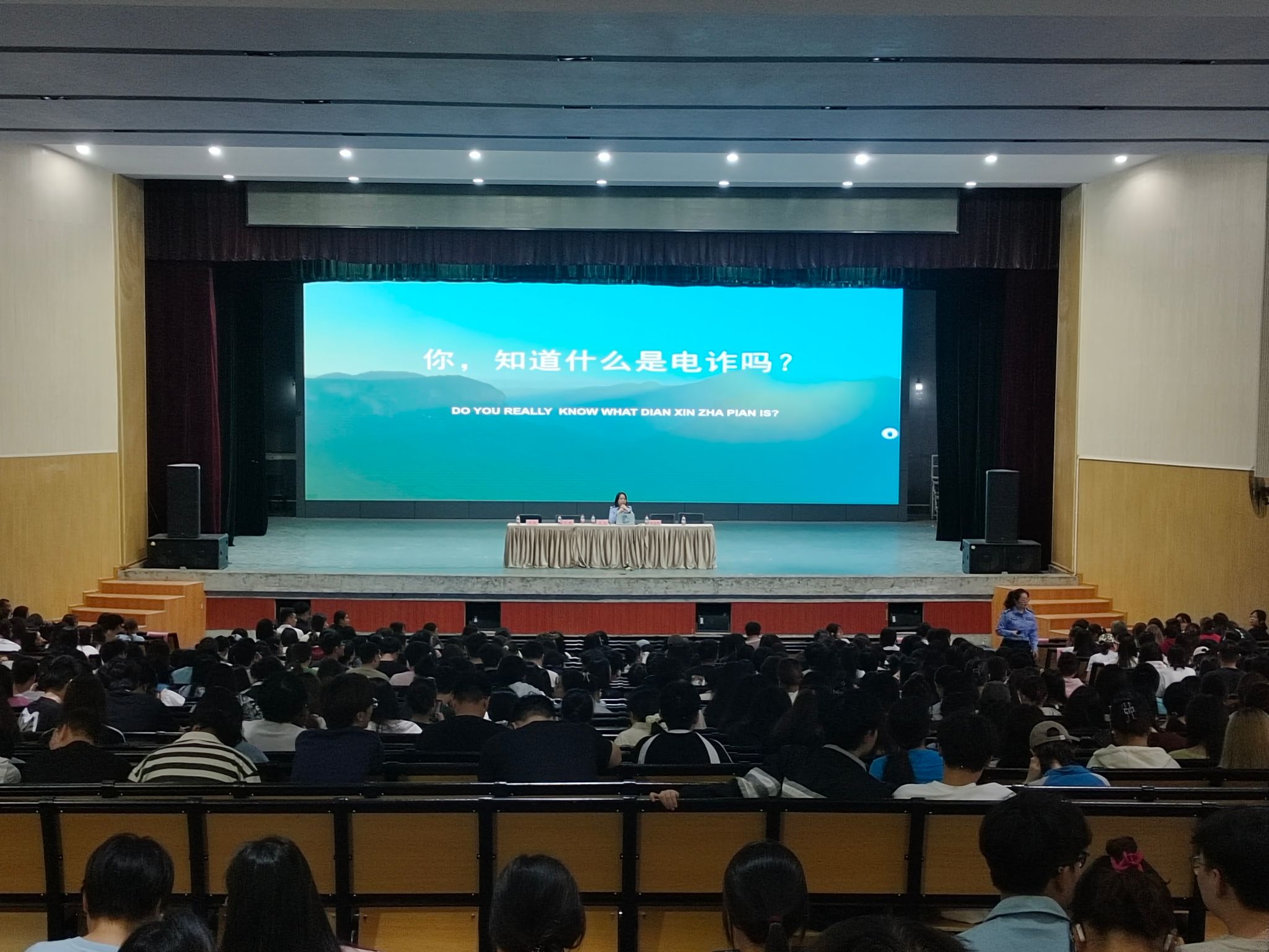 讲座伊始,唐贝警官通过真实案例视频、图文展示等形式,对常见电诈发案类型进行了高度概括,对部分典型案例进行了全面复盘,对同学们上当受骗过程中的心理状态进行了精准分析,对遇到诈骗时可以采取的防范措施进行了重点介绍,对主动或被动状态下涉嫌诈骗行为需要承担的法律后果进行了简要讲解。