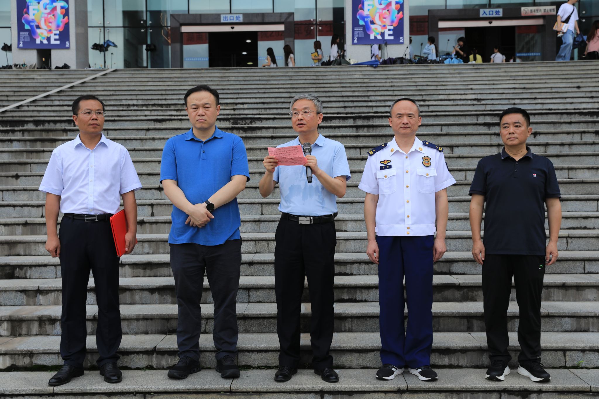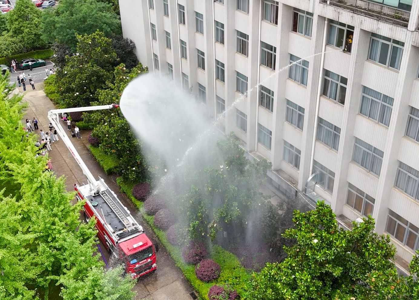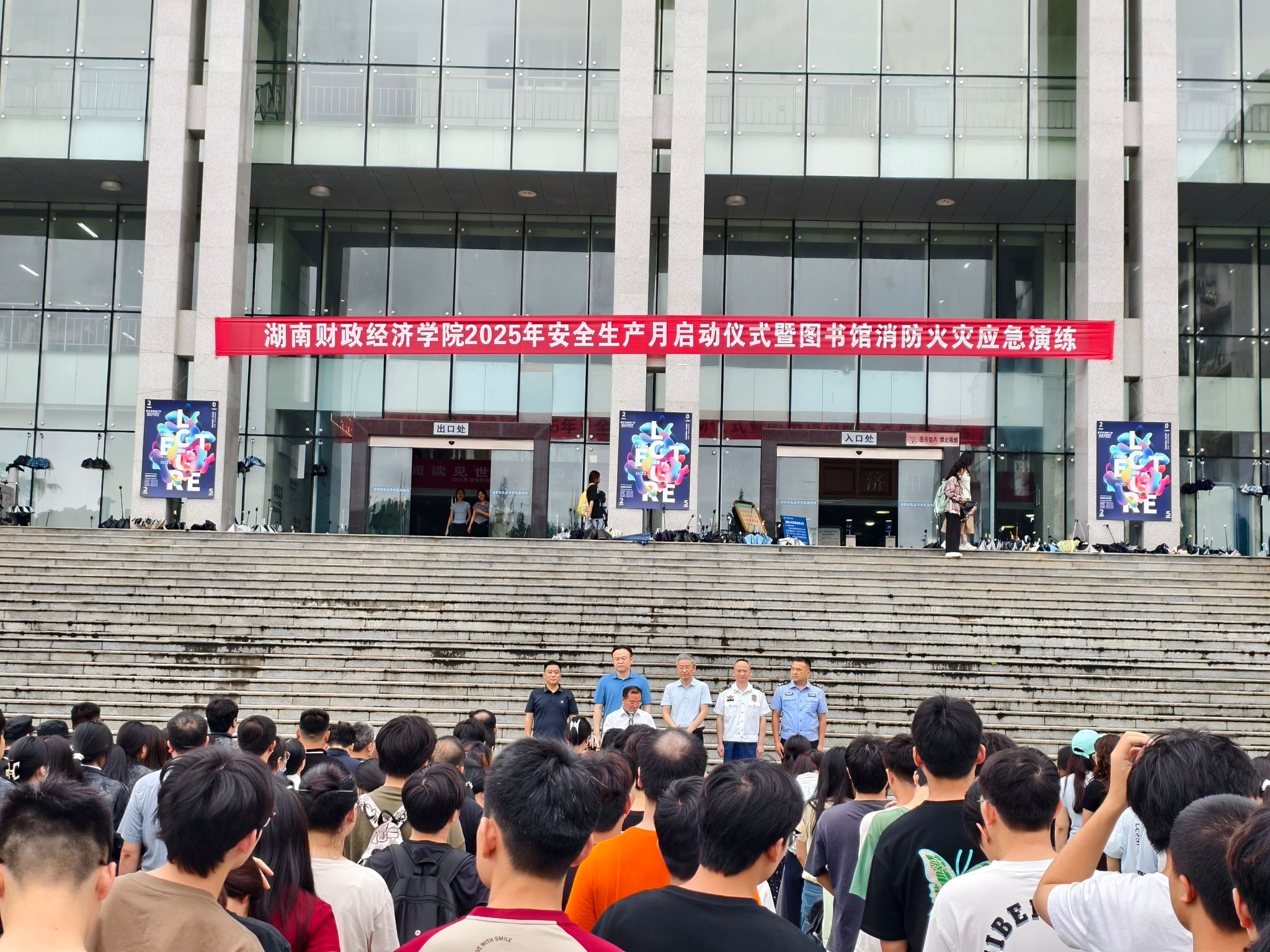 (本网讯)6月11日,学校在厚生广场举行2025年安全生产月活动启动仪式,并联动岳麓区消防救援大队、咸嘉湖街道等属地单位,在图书馆开展消防应急疏散演练。副校长刘钟理、岳麓区消防救援大队大队长李振、咸嘉湖街道党工委书记厉雅硕等领导到场指导,学校相关职能部门及各二级学院学工负责人参加活动。