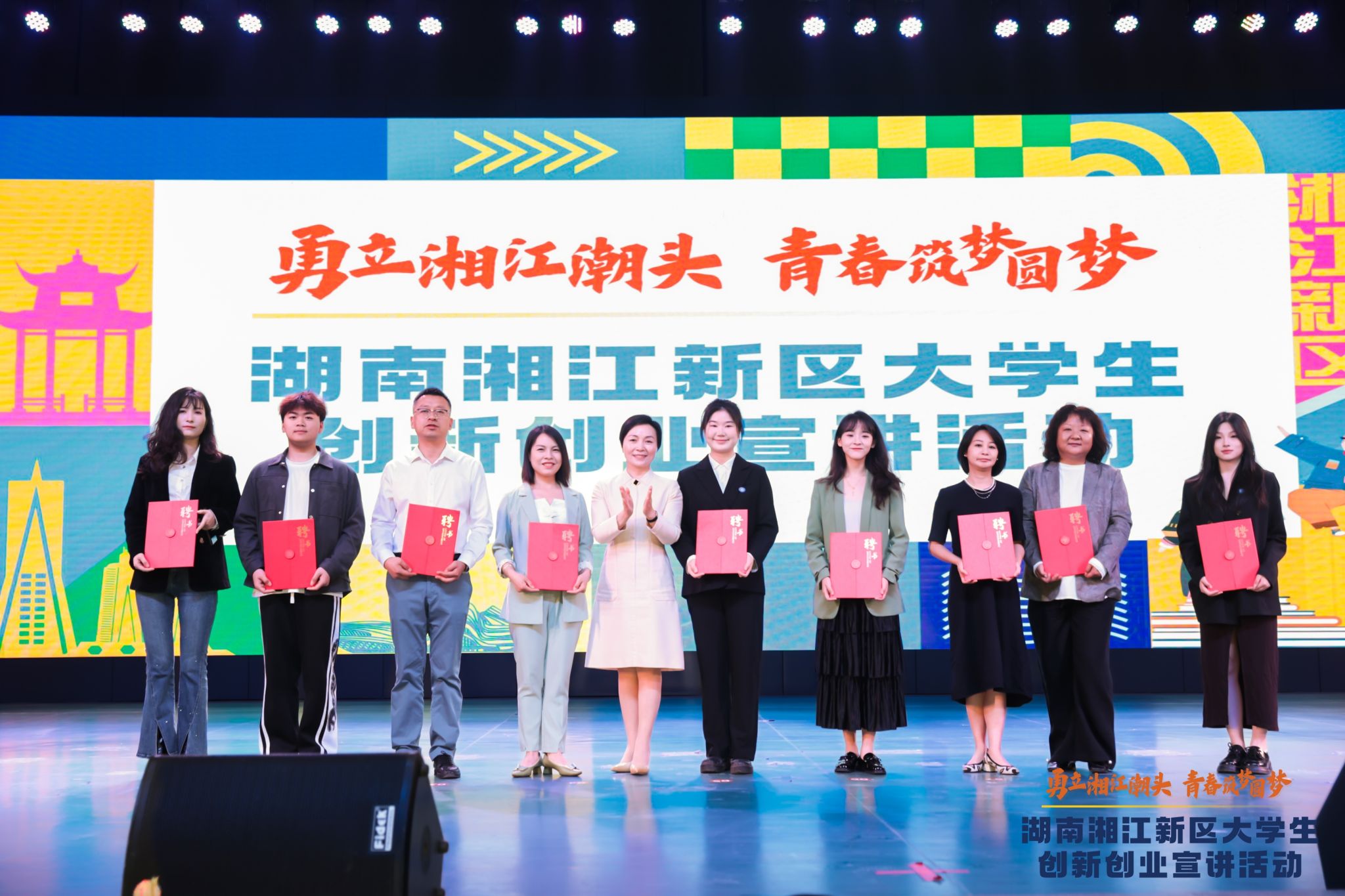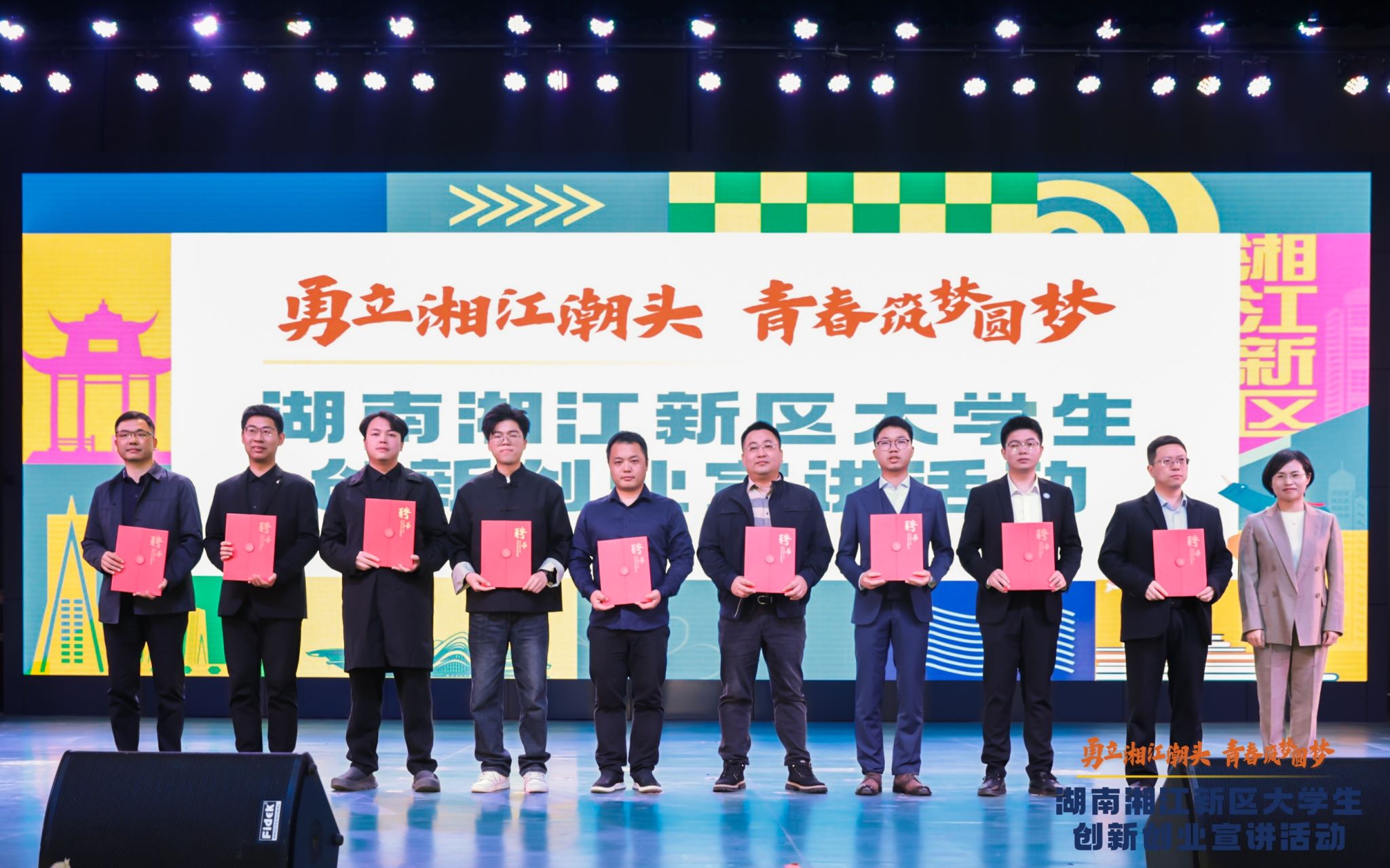 现场为湘江新区大学生创新创业宣讲团代表颁发聘书