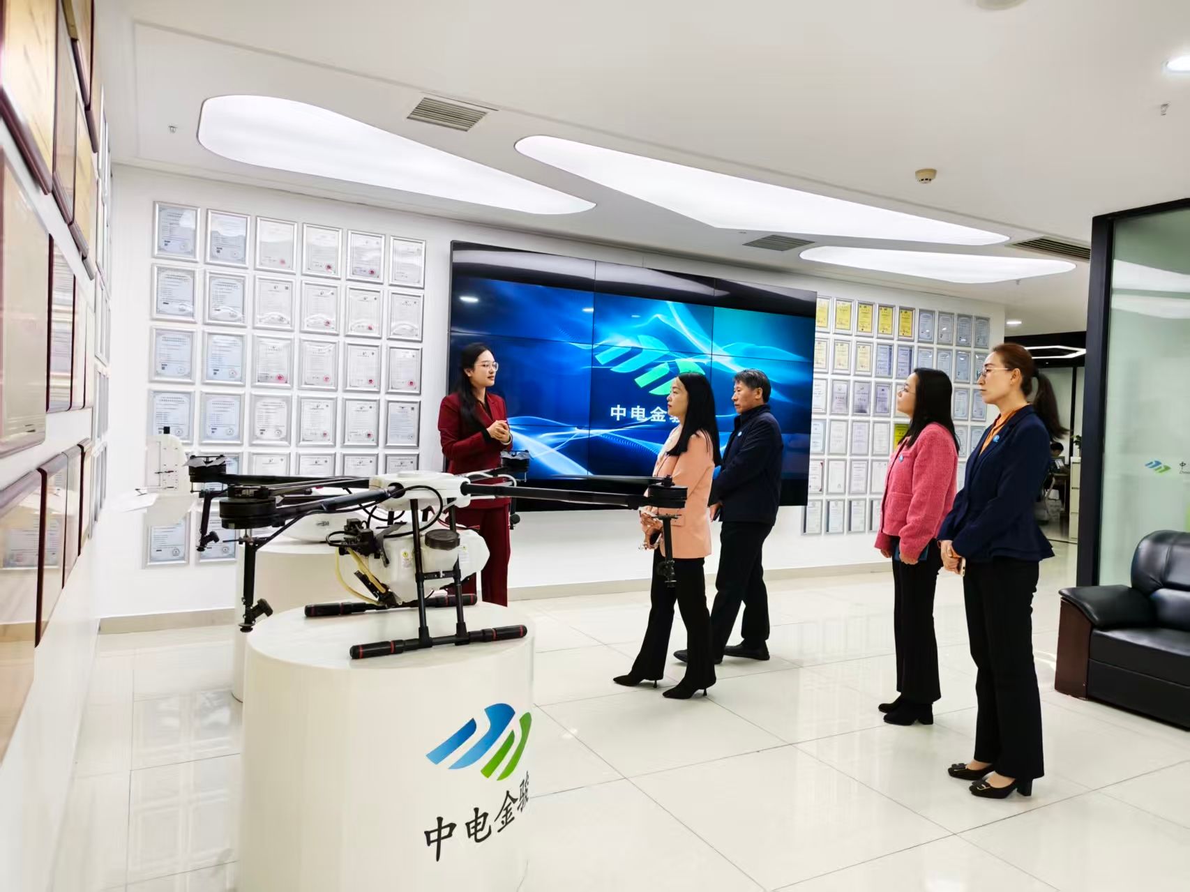 活动伊始,在湖南中电金骏科技集团有限公司行政负责人余媛的带领下,余华、戴恩湘一行先后参观了的公司生产基地与展厅。在参观过程中,详细了解了企业的发展历程、核心业务领域、生产运营模式以及近年来在技术研发、市场拓展等方面取得的成果。