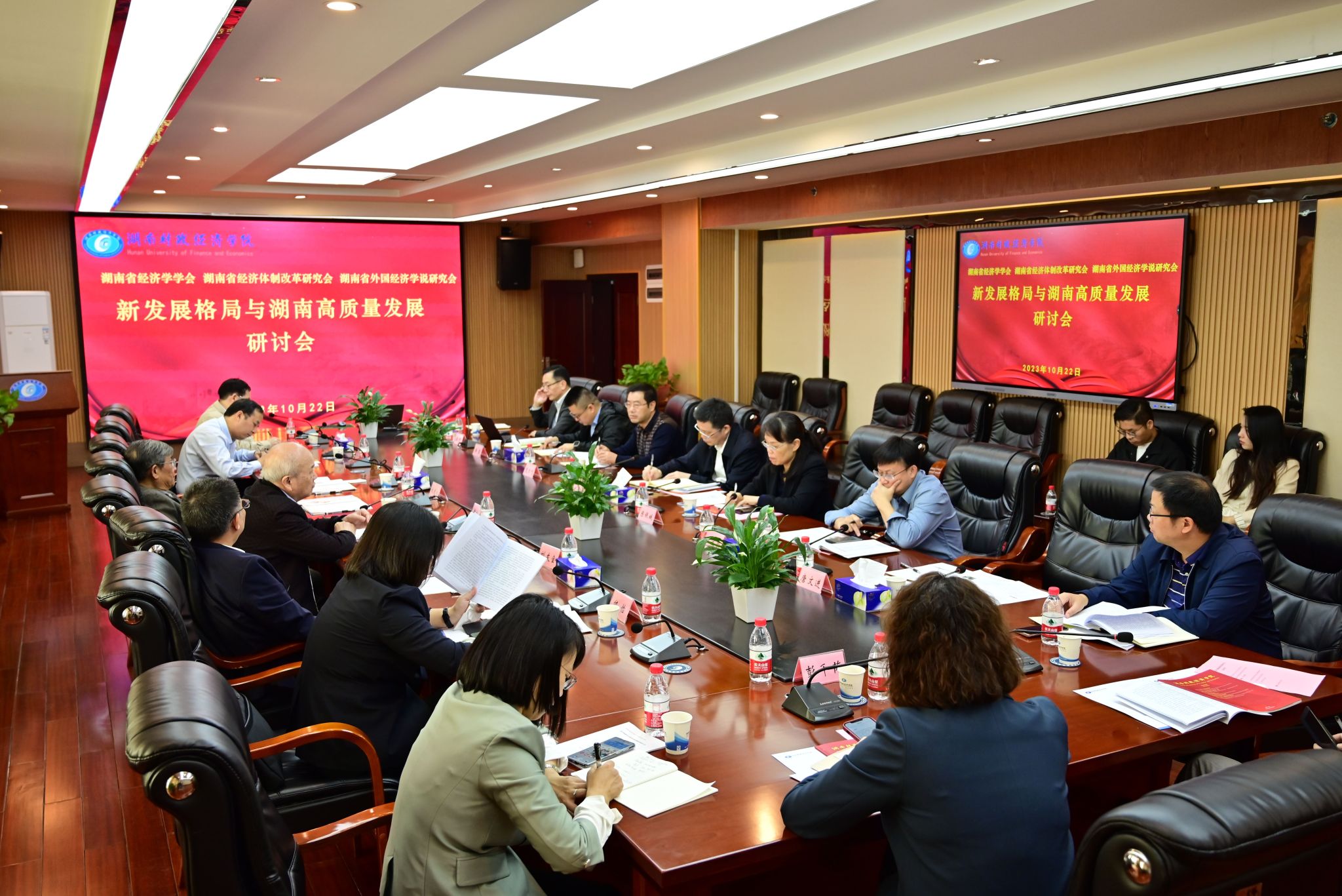 (本网讯)10月22日上午,来自湖南省经济学学会、湖南省经济体制改革研究会、湖南省外国经济学说研究会的20余位省内经济学领域权威专家学者齐聚学校,就“新发展格局与湖南高质量发展”主题进行交流研讨,共贺学校办学90周年。