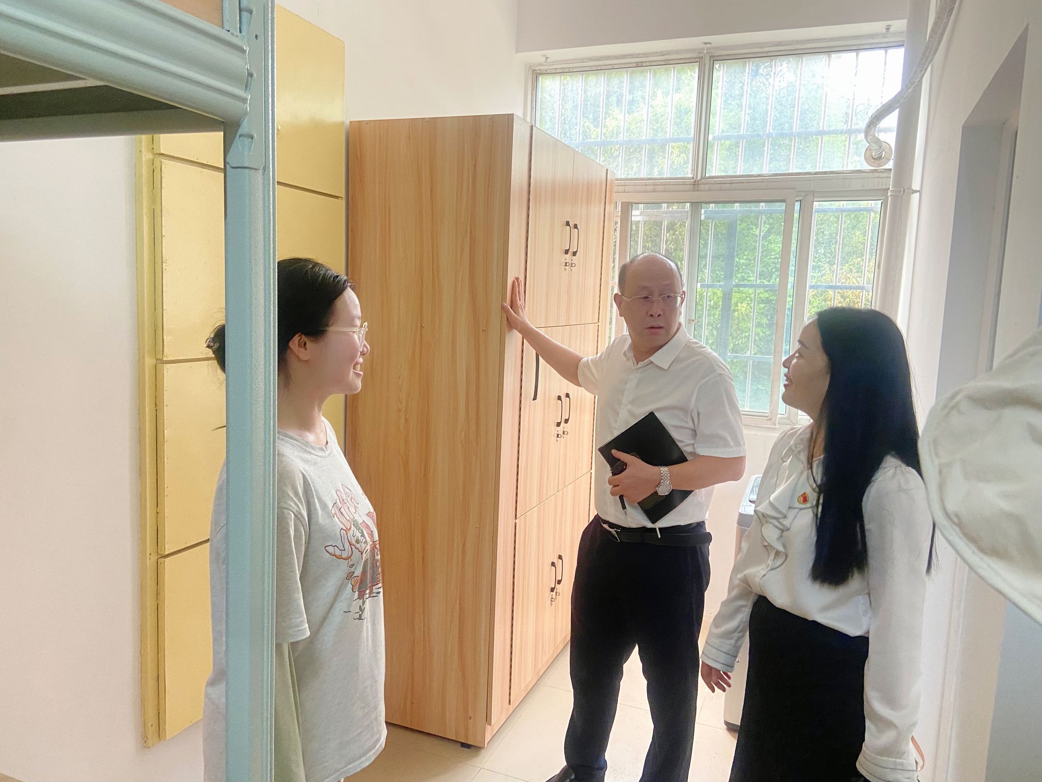 在校党委书记杨兰英、党委副书记苏玲的陪同下,夏智伦走进提质改造后的学生宿舍,仔细察看硬件设施和环境卫生状况,要求学校加强学生宿舍日常管理,保持室内通风透气、整洁卫生,聚焦消防安全、用电安全等方面强化隐患排查整治,防范安全事故发生。在学生寝室,校领导们详细了解、认真查看搬迁情况,叮嘱有关部门要仔细排查学生宿舍区可能存在的安全隐患,做好学生入住后的生活保障工作,帮助同学们尽快度过磨合期、适应新环境。校领导们还与同学们亲切交谈,提醒大家要注意搬迁安全,自觉遵守宿舍管理规定,营造健康文明、整洁高雅的宿舍环境。