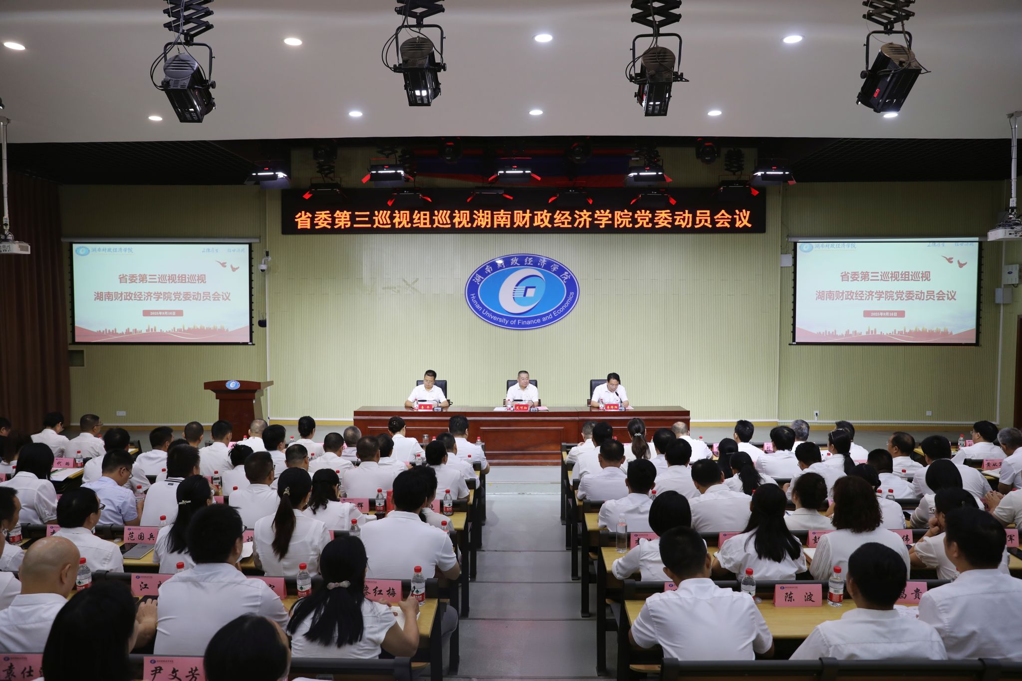 省委第三巡视组副组长易平及有关同志,Beat365唯一官方网站党委领导班子成员出席会议,学校近3年退休的省管干部,二级单位主要负责人及班子成员和教师代表列席会议。