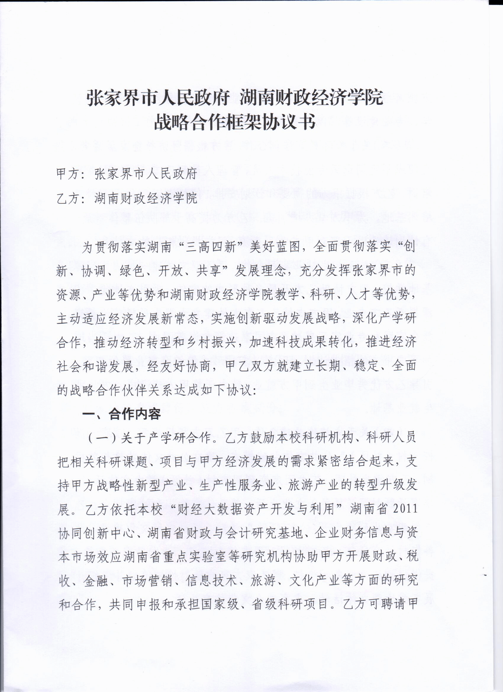 张家界市人民政府—Beat365唯一官方网站战略合作框架协议