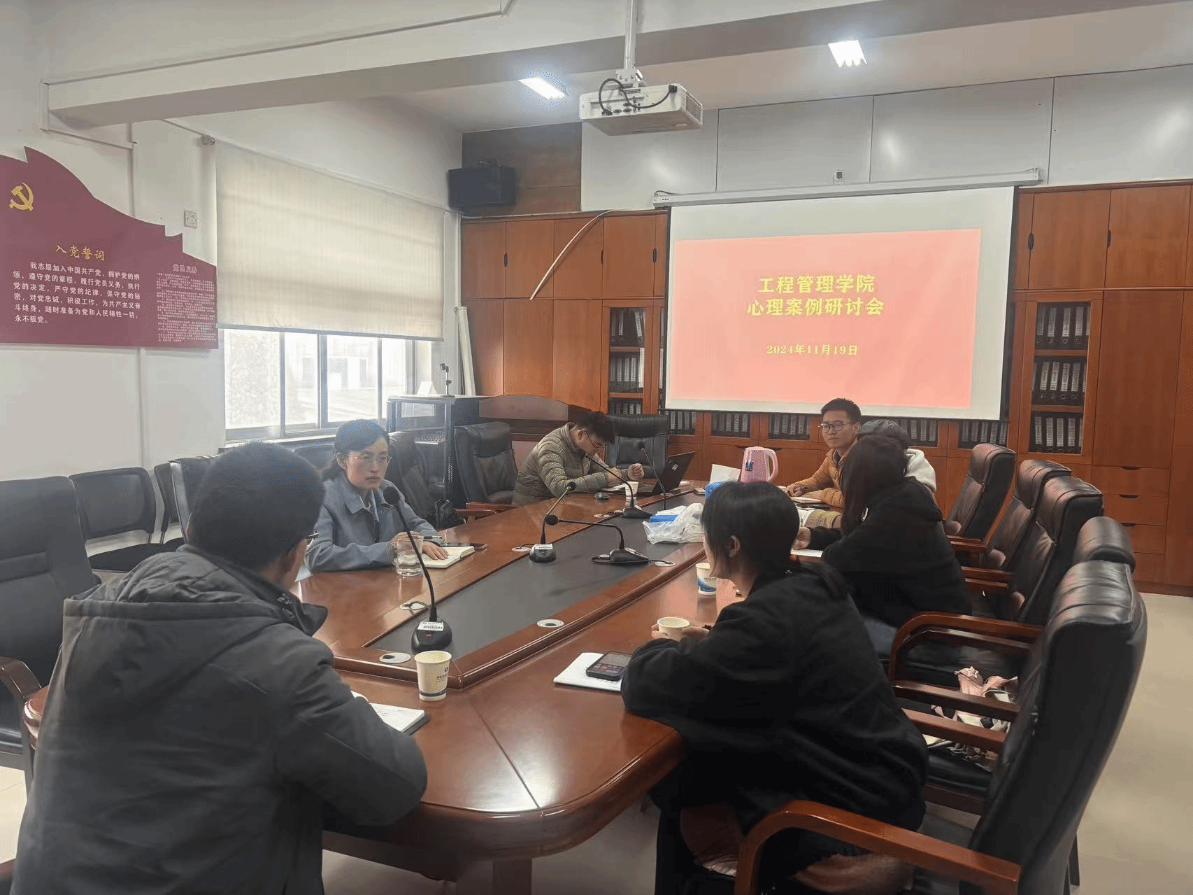 (本网讯)为进一步提高全体辅导员心理健康教育工作水平,加强包括兼职辅导员在内的辅导员心理危机预防及干预工作的能力,2024年11月19日上午, 我院于办公楼911会议室开展“秋季学期第二次辅导员心理案例研讨会”。院党委副书记刘绿丝,学工办主任袁仕远,及全体专职辅导员和兼职辅导员欧光照老师、潘红玉老师参加本次会议。