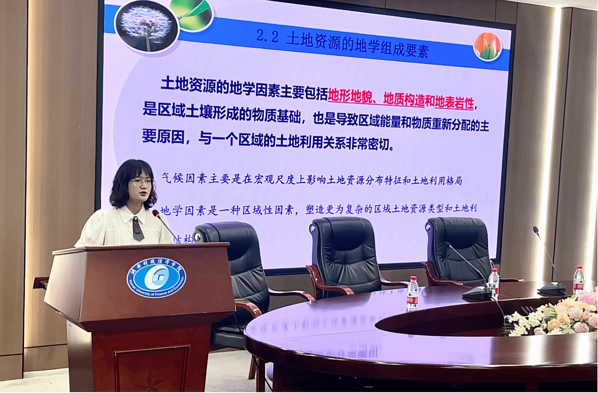 四位教师依次登台,教学风采各具特色。苏慧老师以《土地资源的构成要素》为授课主题,重点介绍了SWOT分析方法在课堂中的应用。她条理清晰地讲解知识要点,以新颖独特的教学方式,引导学生深入剖析土地资源要素,有效点燃了学生的求知热情,为课程教学创新提供了新思路。