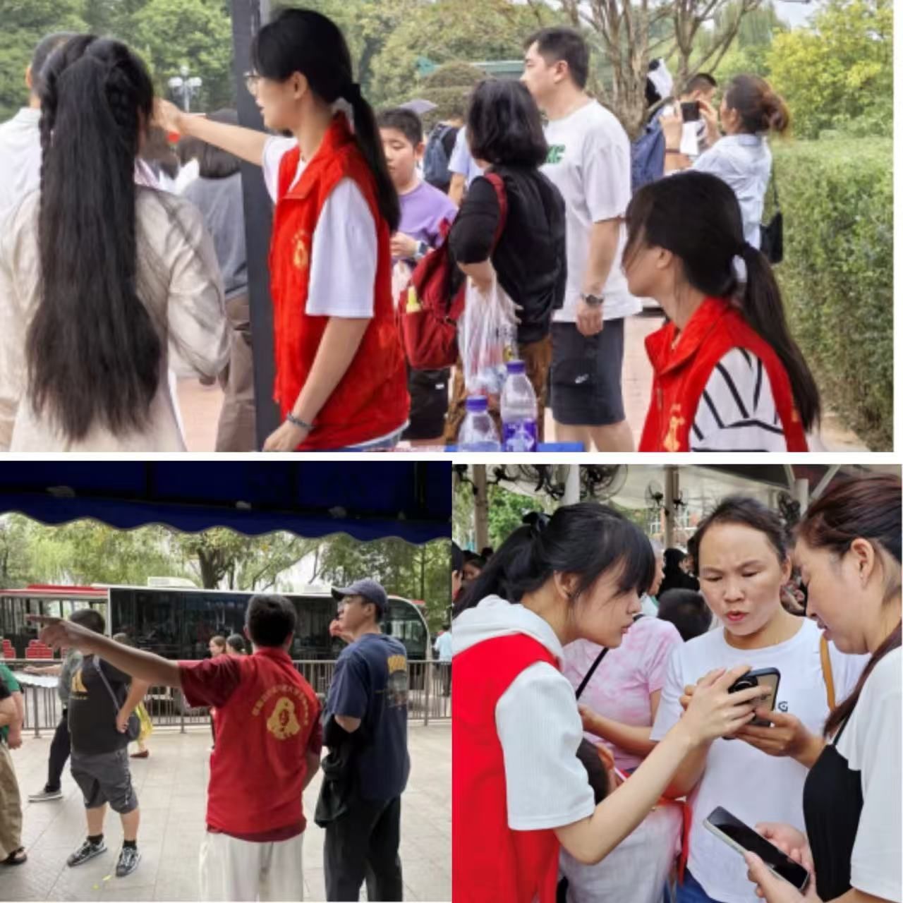 在景区入口处,志愿者们主动上前,协助工作人员引导游客有序排队、核验入园信息,耐心提醒大家遵守景区规定,有效缓解了节假日入园高峰的人流压力,让游客的入园体验更顺畅、更安心。