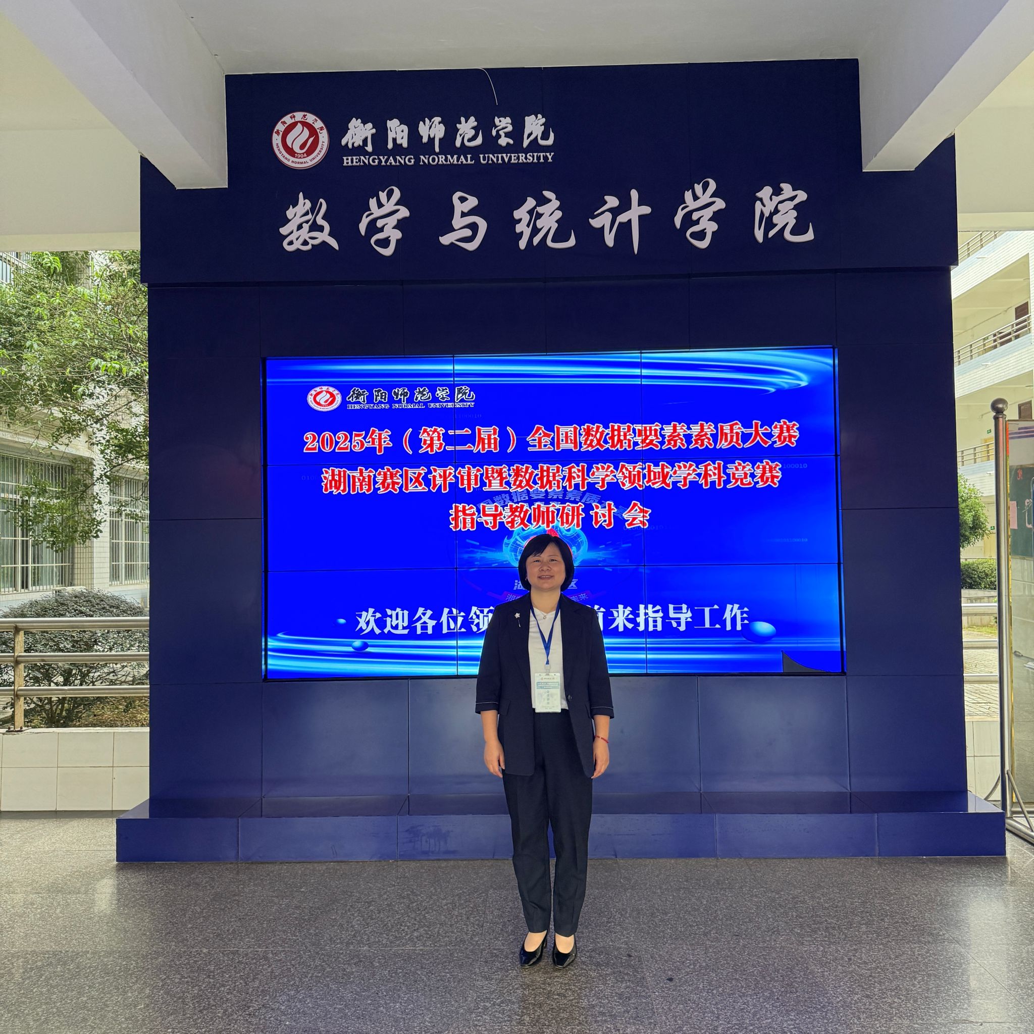 (本网讯)2025年10月17日至19日,2025年(第二届)全国数据要素素质大赛湖南赛区评审工作会议暨数据科学领域学科竞赛指导教师研讨会在衡阳师范学院成功举办。我院副院长刘纯霞教授作为大赛评审专家受邀出席,参与省级决赛项目的评审与指导工作,并围绕数据科学领域学科竞赛与人才培养的创新路径开展专题交流。