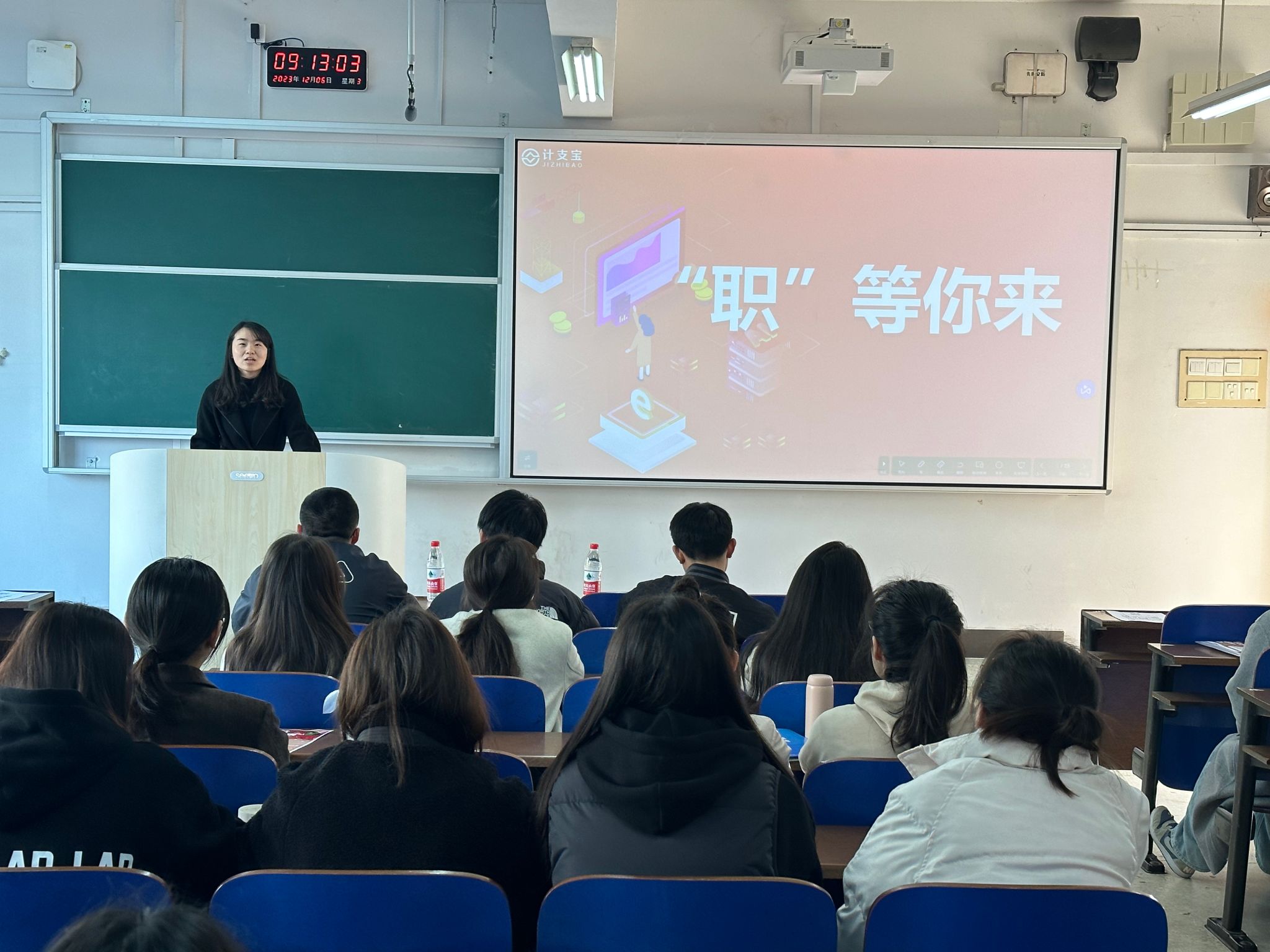 (本网讯)12月6日,长沙计支宝信息科技有限公司在三教学楼3202教室举办工程管理学院专场招聘会。院党委副书记刘绿丝、就业专干袁仕远、毕业班辅导员周彩萍及2024届部分毕业生参加招聘会。