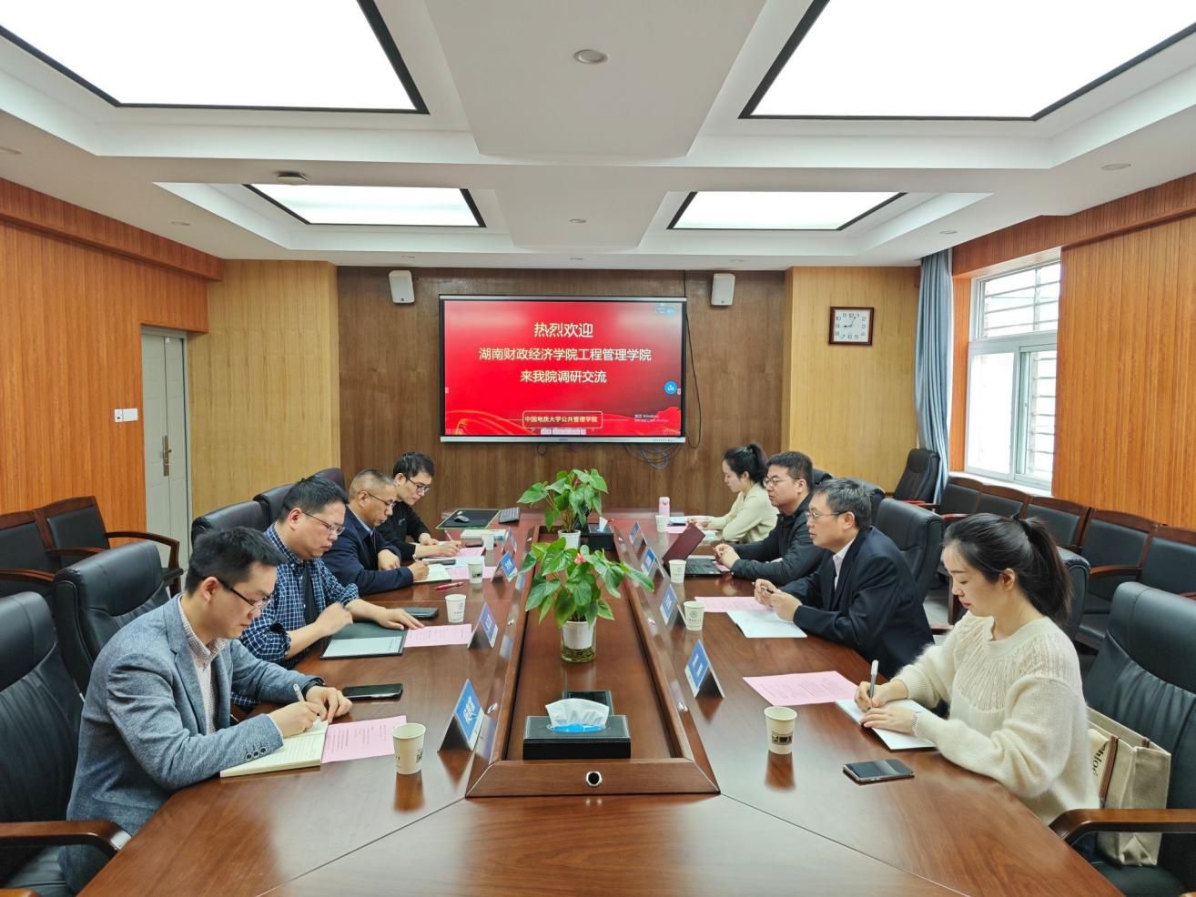 4月10日,前往中国地质大学进行调研学习,公共管理学院朱江洪副院长,土地资源管理系主任方世明教授、副主任杨剩富副教授、李士成副研究员参加座谈会。
