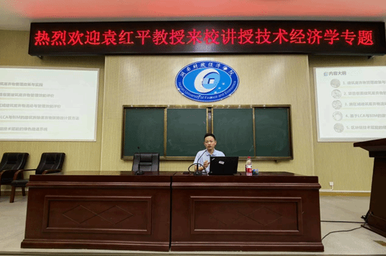 袁红平教授从城市建设过程中产生的建筑废弃物处理出发,系统总结建筑废弃物管理原则,阐述建筑废弃物管理政策与实践,同时引导同学们如何得到研究问题。袁教授从项目层面对建筑废弃物管理效能评价进展介绍,进一步从城市整体视觉出发,将评估范围从单个项目扩展到更广泛、更综合的视角。通过博弈论构建存在两个潜在BIM技术采纳企业和政府的三方博弈模型,分析在政府补贴下考虑企业技术采纳特征的BIM技术扩散问题,对企业BIM技术采纳时机的最优决策、以及政府的最优补贴策略进行分析。