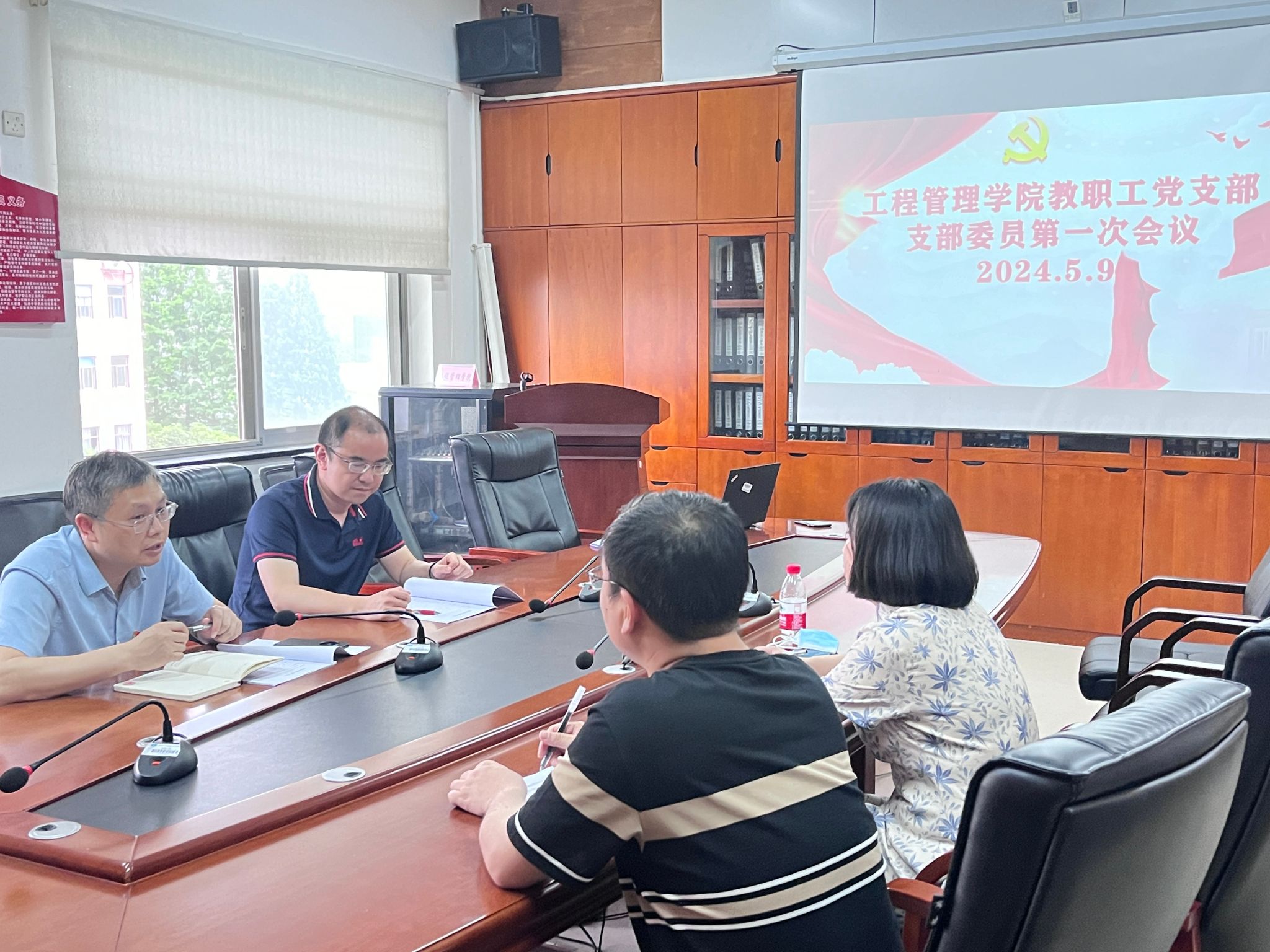 (本网讯)5月9日下午,工程管理学院教职工党支部在办公楼911召开全体党员大会,选举新一届支部委员会、支部书记和副书记,全体教职工党员参会。