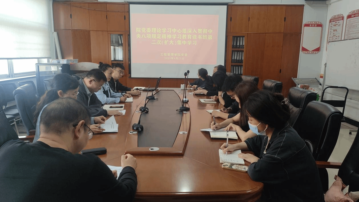(本网讯)4月25日,工程管理学院党委在办公楼911召开理论学习中心组深入贯彻中央八项规定精神学习教育读书班第二次(扩大)集中学习,全体院领导、院党委委员、院科级干部、院专职组织员及各党支部书记参加,院党委书记向占宏主持会议。