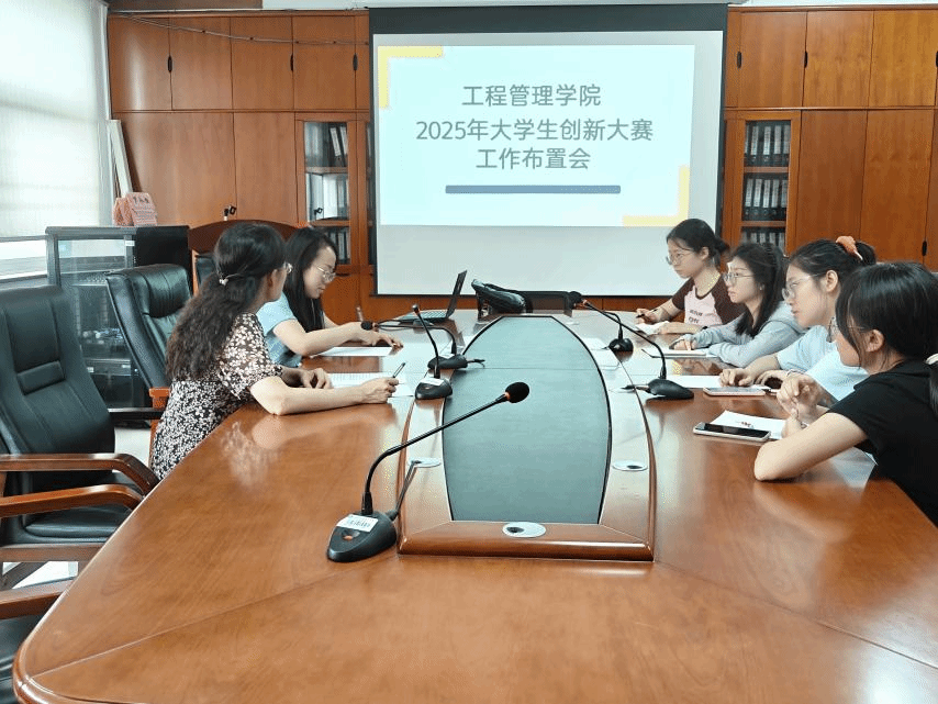 (本网讯)2025 年 5 月 27 日下午 16 点,工程管理学院于办公楼 911 会议室召开了 2025 年大学生创新大赛工作布置会。党委副书记刘绿丝、团总支书记陈龙雨、院科创部部长及副部长共同参会,旨在全面部署大学生创新大赛相关工作,确保赛事顺利开展。