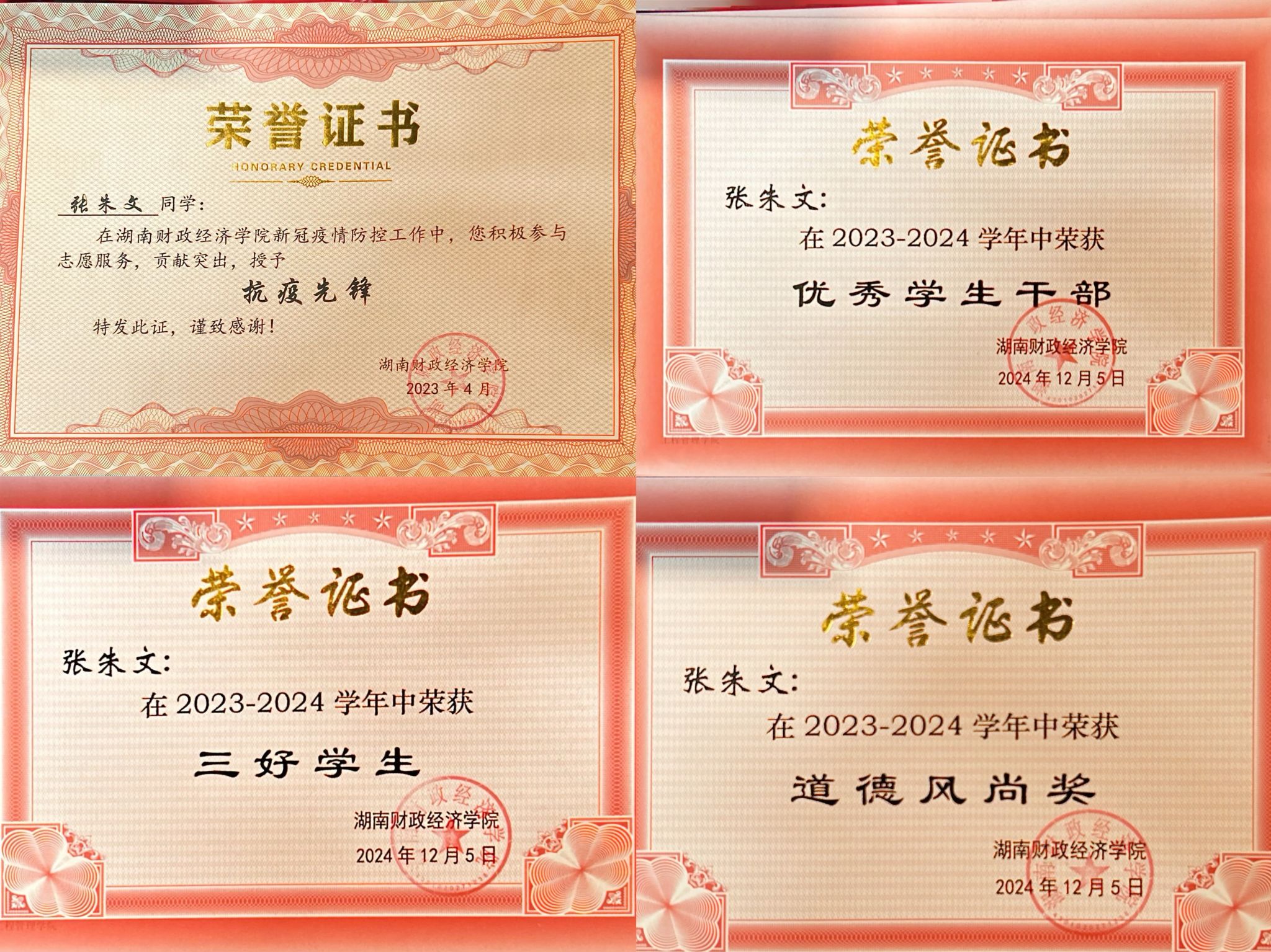 张朱文,男,汉族,中共党员,湖南常德人。荣获湖南省优秀毕业生,湖南省科技馆优秀志愿者,Beat365唯一官方网站优秀志愿者,抗疫先锋,三好学生,道德风尚等奖项,连续三年评得校级优秀学生干部,连续三年荣获校级二、三等奖学金,任第二十届校青年志愿者协会主席团副主席,累计志愿服务时长1000+小时,加入校团委第五届微光志愿服务队担任副队长一职,参与推广全国普及普通话活动,参加全国大学生暑期三下乡活动,其支教实践被红网等媒体报道,还参与2024年春节联欢晚会长沙分会场特别节目的录制。