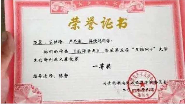 第五届“互联网+”大学生创新创业大赛校赛一等奖