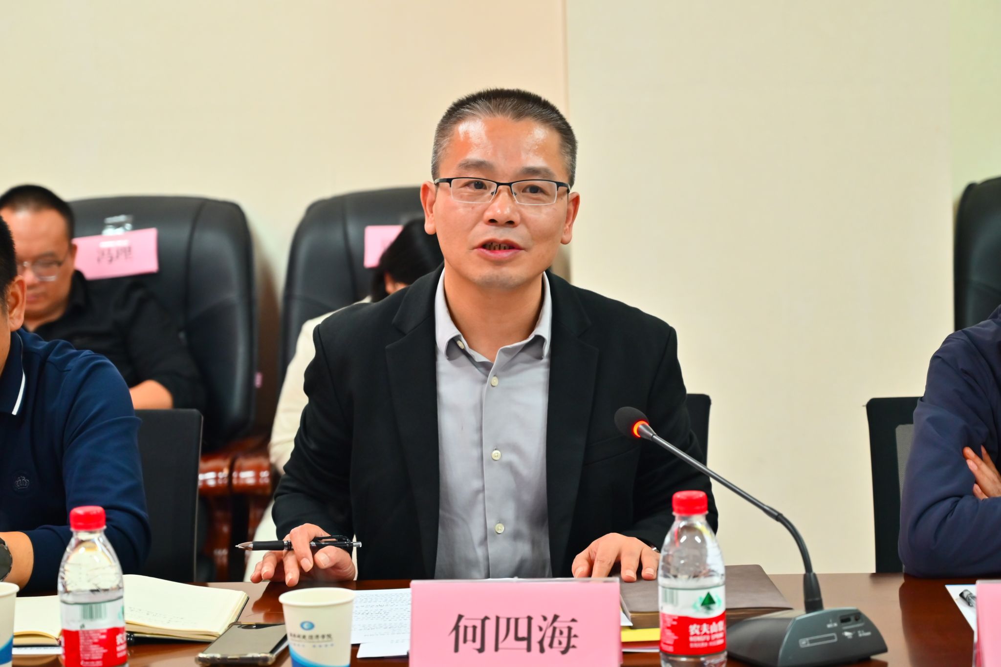 (本网讯)为凝聚校友力量,进一步推动产学研深度融合,助推学院高质量发展,10月26日,法学与公共管理学院于主校区办公楼414-2会议室开展主题为“集聚校友凝力量,开校企合作新局”的产学研高峰论坛暨校友返校日座谈会。学校纪委书记李雪山出席会议,学院领导班子、各系系主任、校友代表等参与本次座谈会。会议由学院党委书记何四海主持。