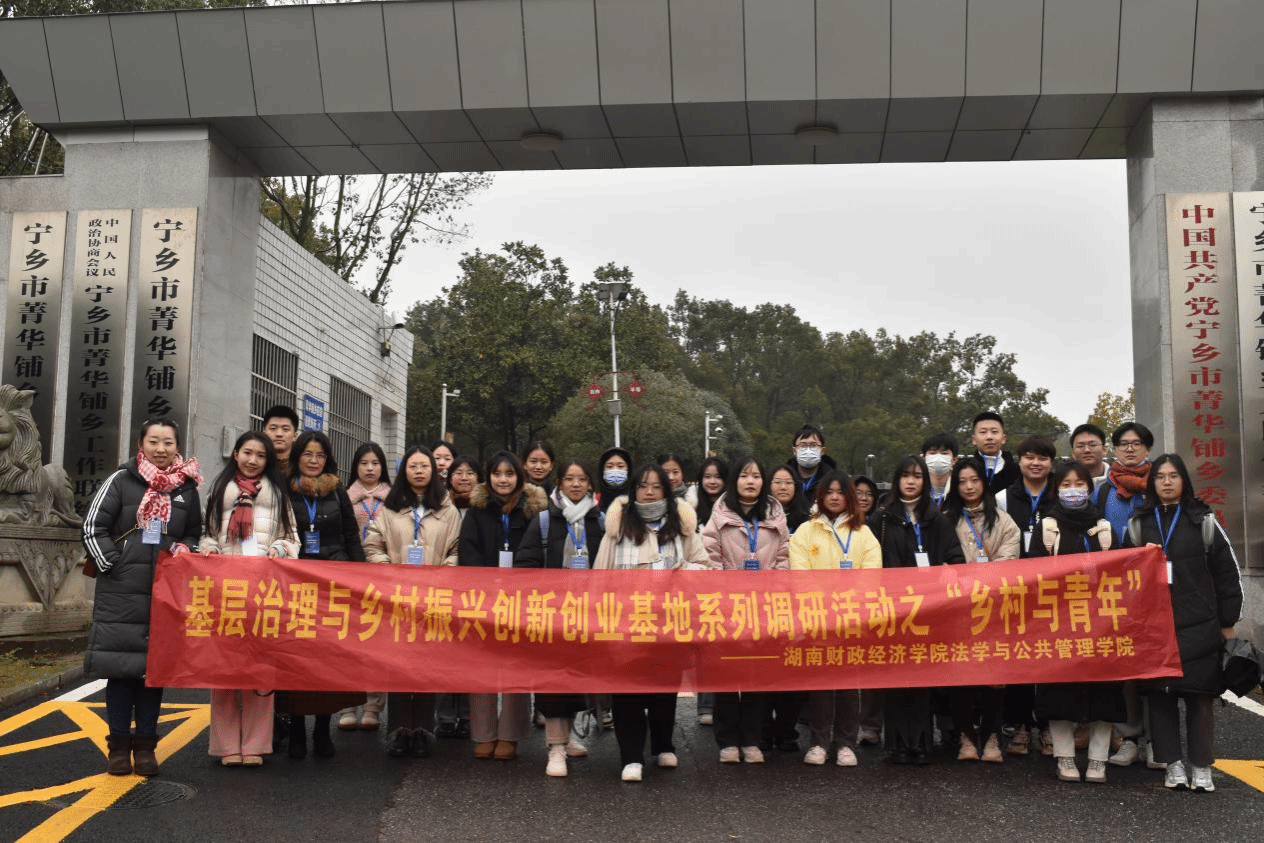 (本网讯)12月18日,法学与公共管理学院系主任周云芳、汪含昊,青年骨干教师侯丹丹、刘曼格带领行政管理系和劳动与社会保障系的学生前往宁乡市菁华铺乡陈家桥村调研。