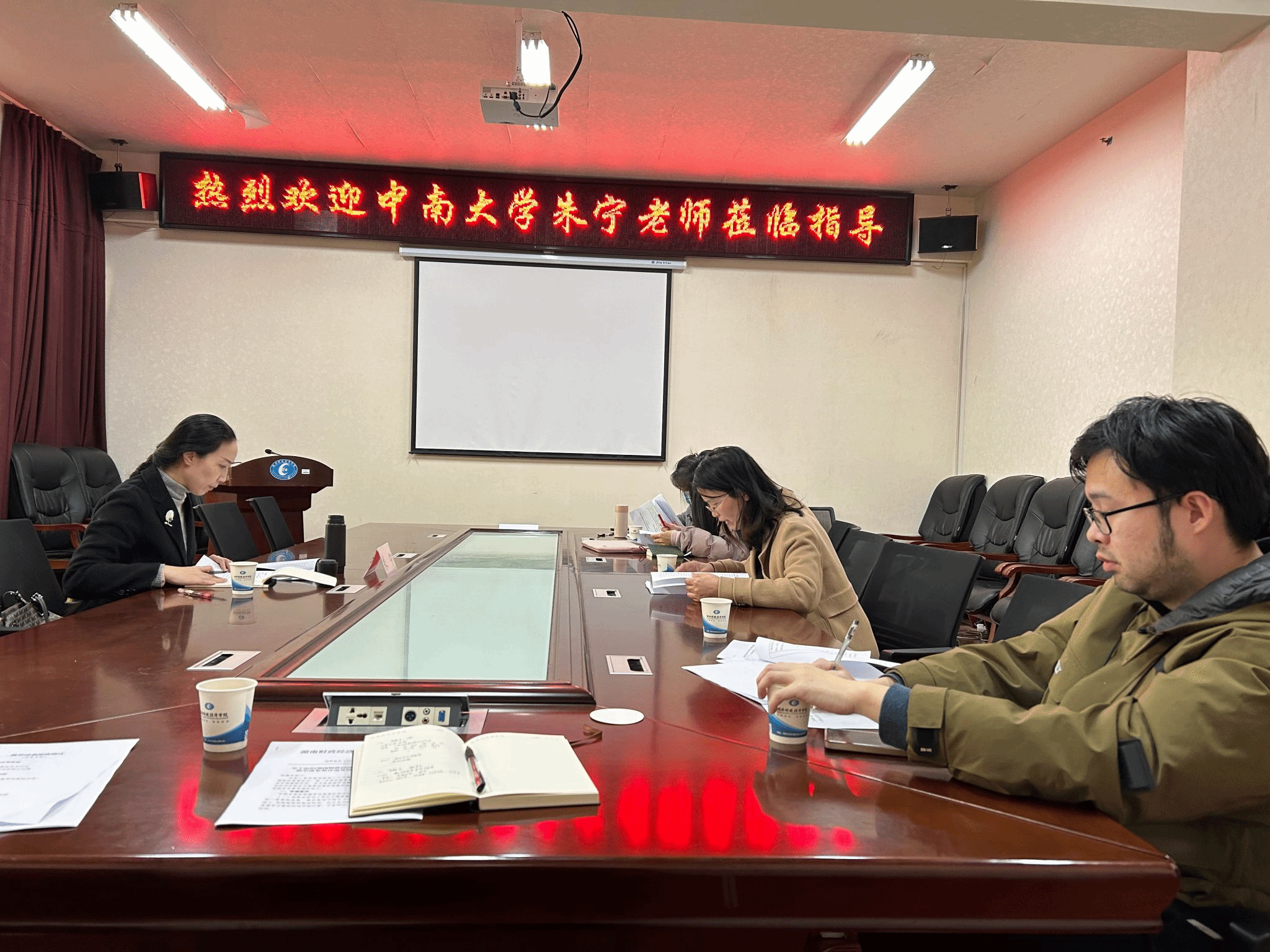 (本网讯)1月7日下午,法学与公共管理学院在办公楼414-2会议室召开了教学成果奖申报指导会,中南大学副教授朱宁应邀做现场指导。会议由学院副院长彭赛红主持,各系主任及教学成果奖申报团队主要成员参加会议。