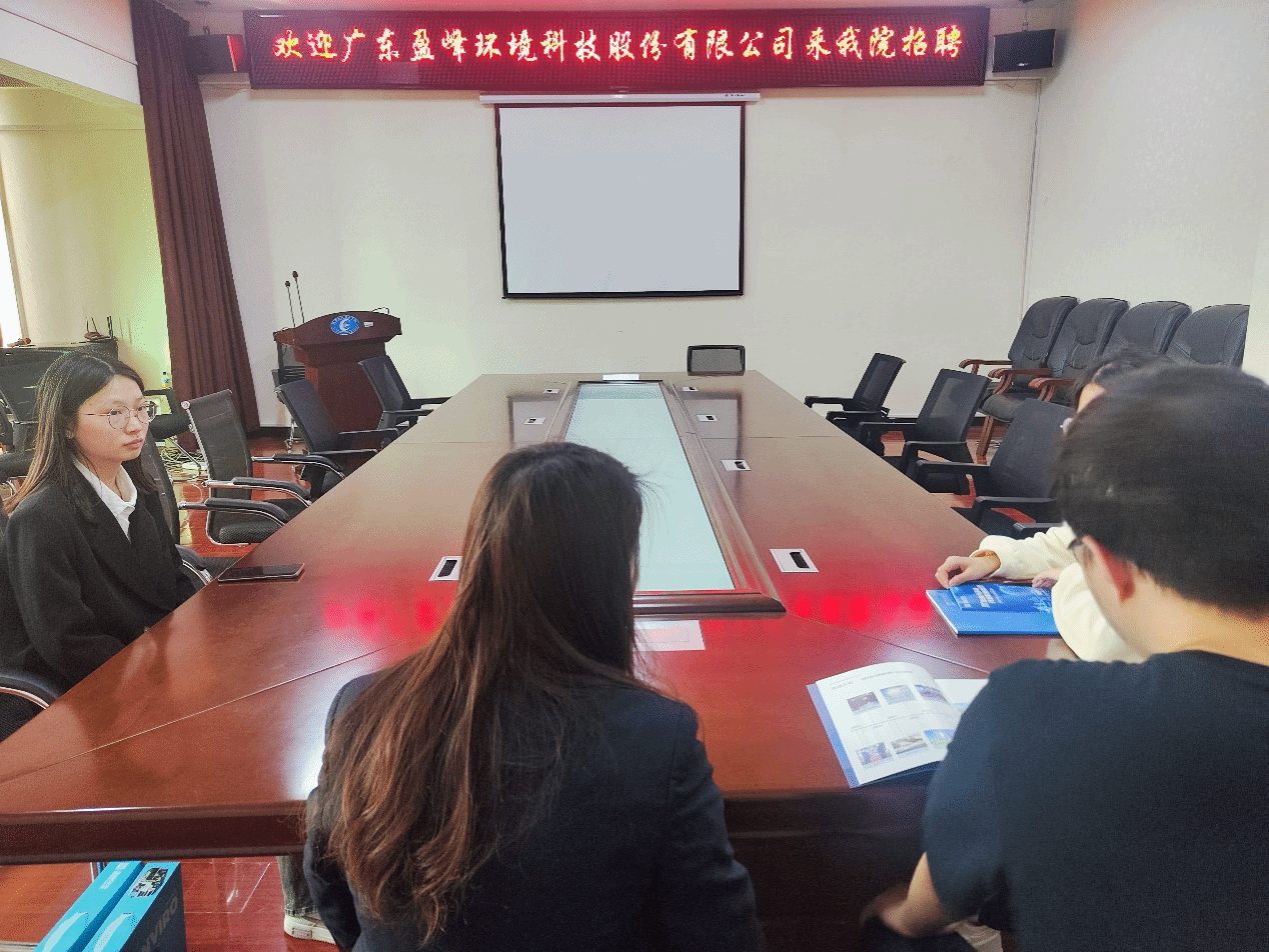 (本网讯)为积极响应教育部、学校“访企拓岗”的工作要求,推进学院毕业生多维度、高质量就业,3月28日上午,盈峰环境科技集团股份有限公司受邀到我院开展专场招聘座谈会,副院长彭赛红、毕业班辅导员何梦丽及2024届部分毕业生参加招聘座谈会。