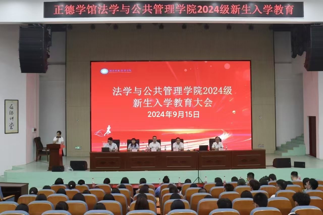 (本网讯)为帮助2024级新生尽快融入专业学习,9月15日,法学与公共管理学院在雷锋校区L1114教室举行了2024级新生入学教育大会。学院党委书记何四海、党委副书记李茂华、副院长彭赛红、姚德超、三办主任、系主任、辅导员及教师代表等出席大会,350余名新生参加了活动。