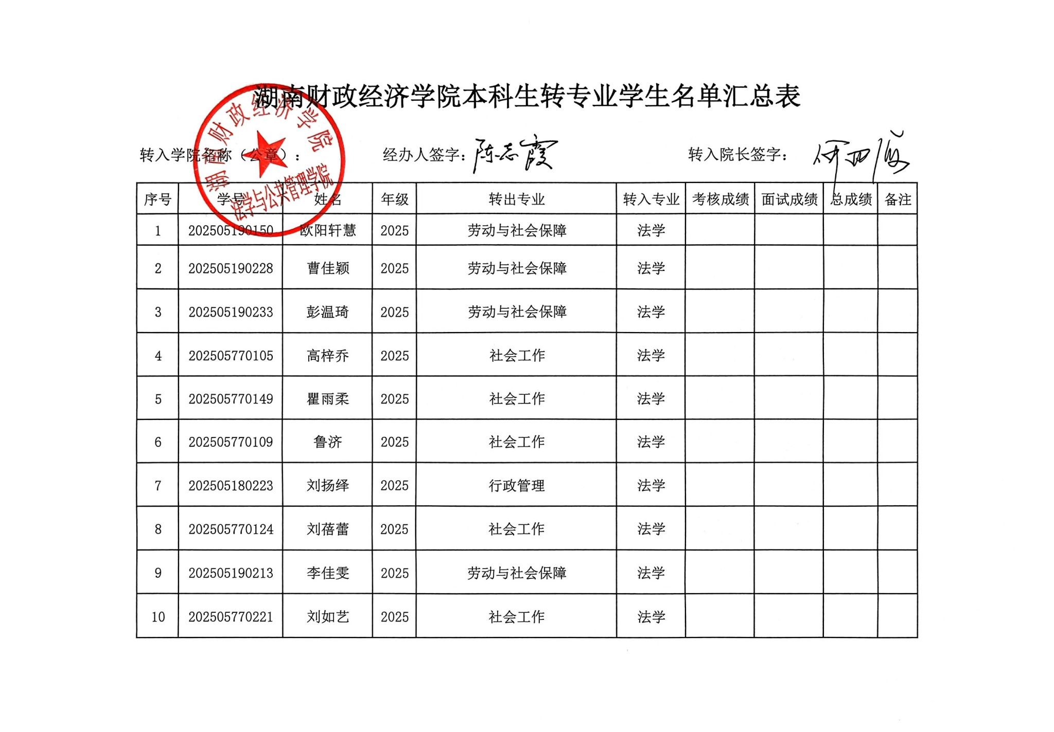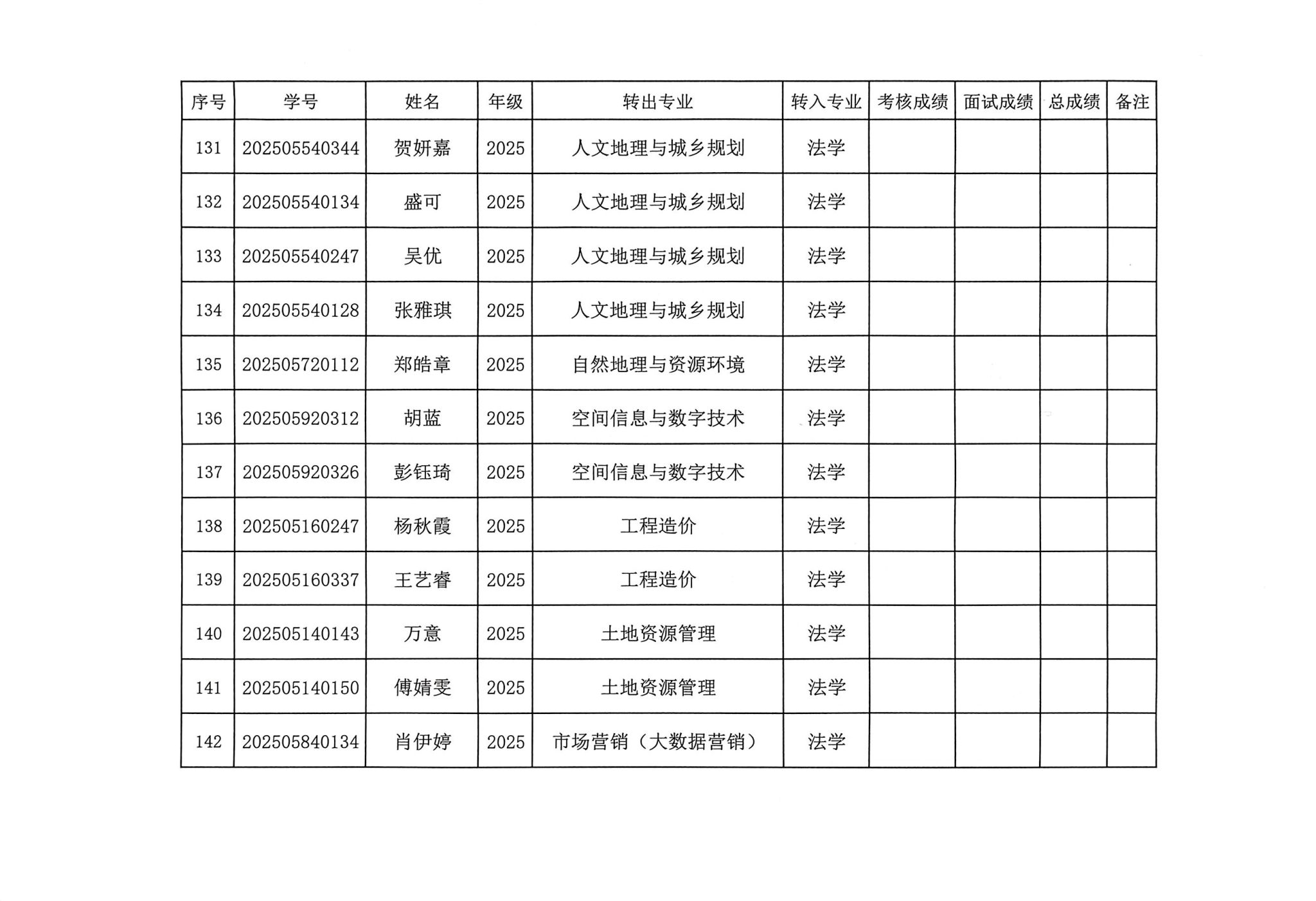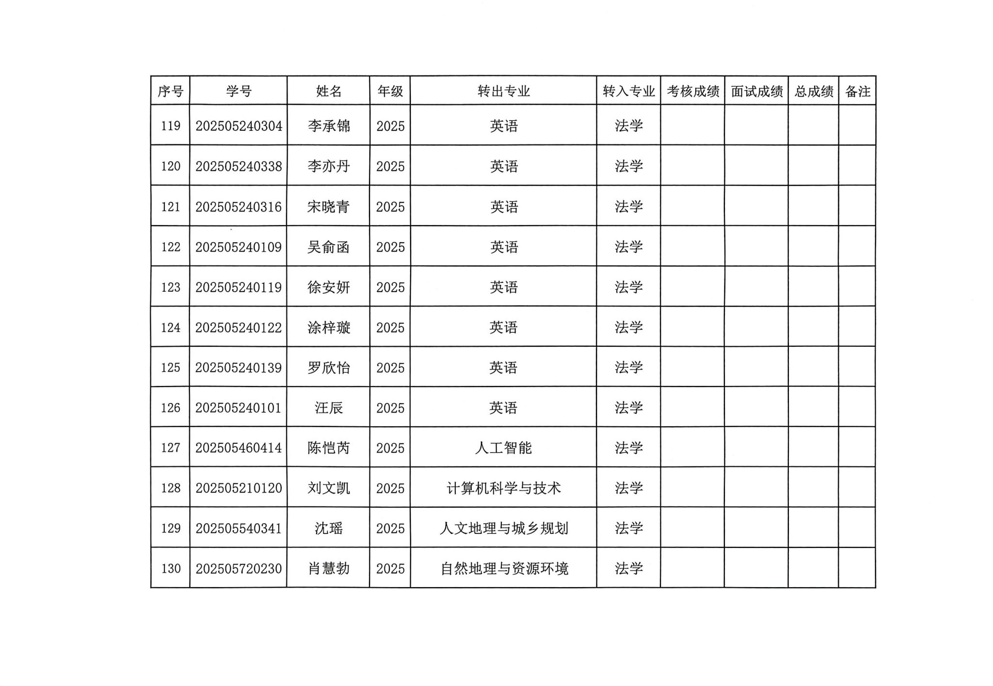 法学与公共管理学院2025级本科生转法学专业拟同意转入名单公示表