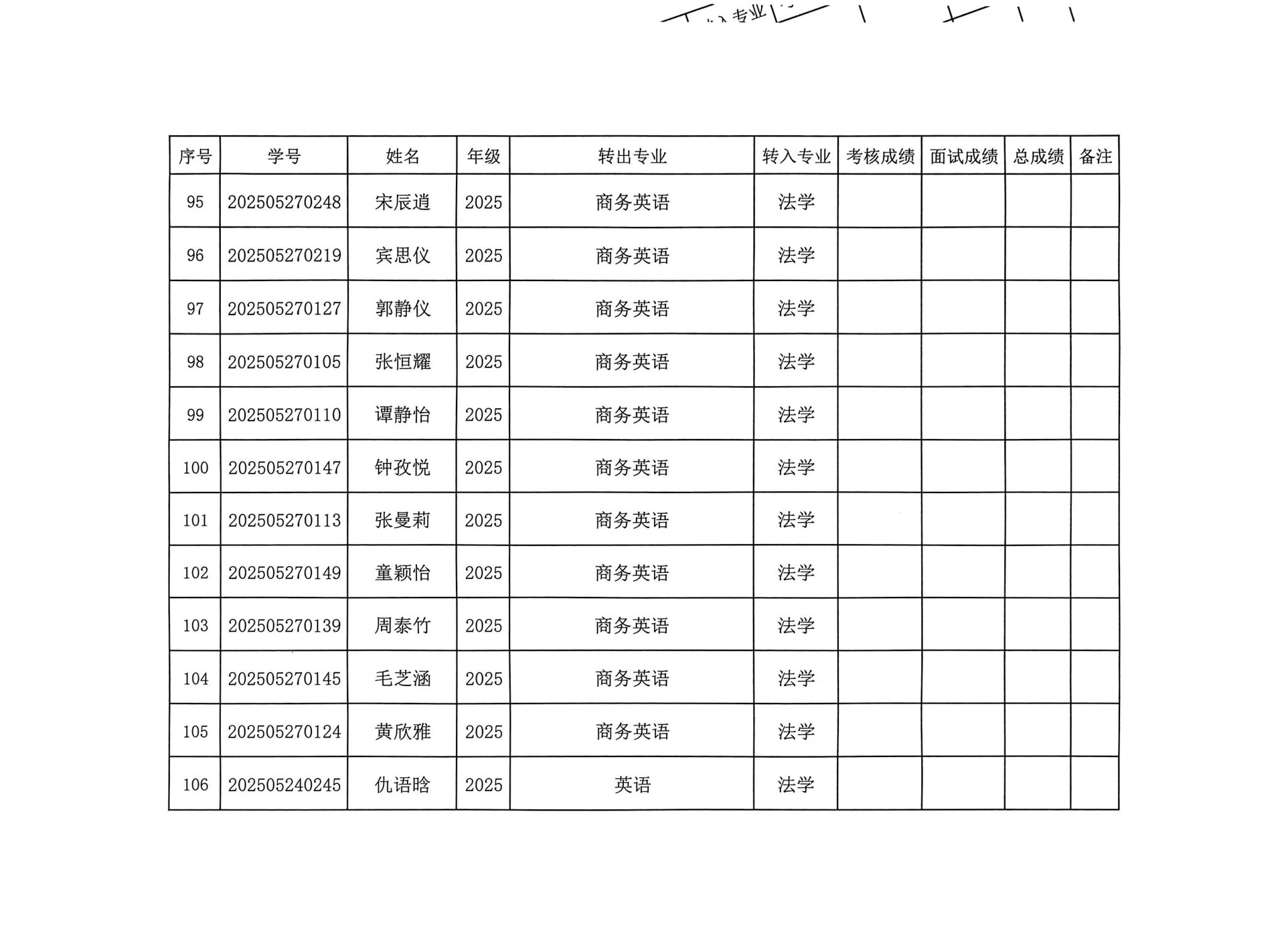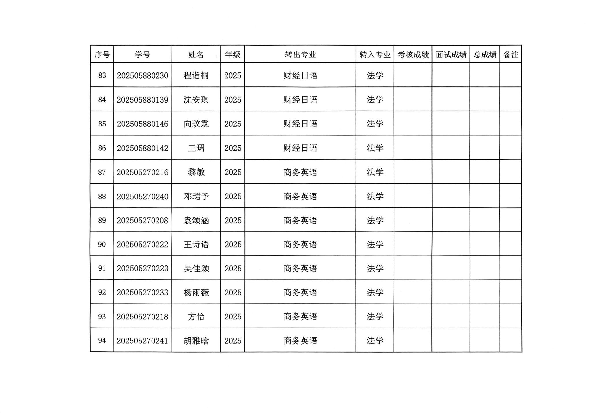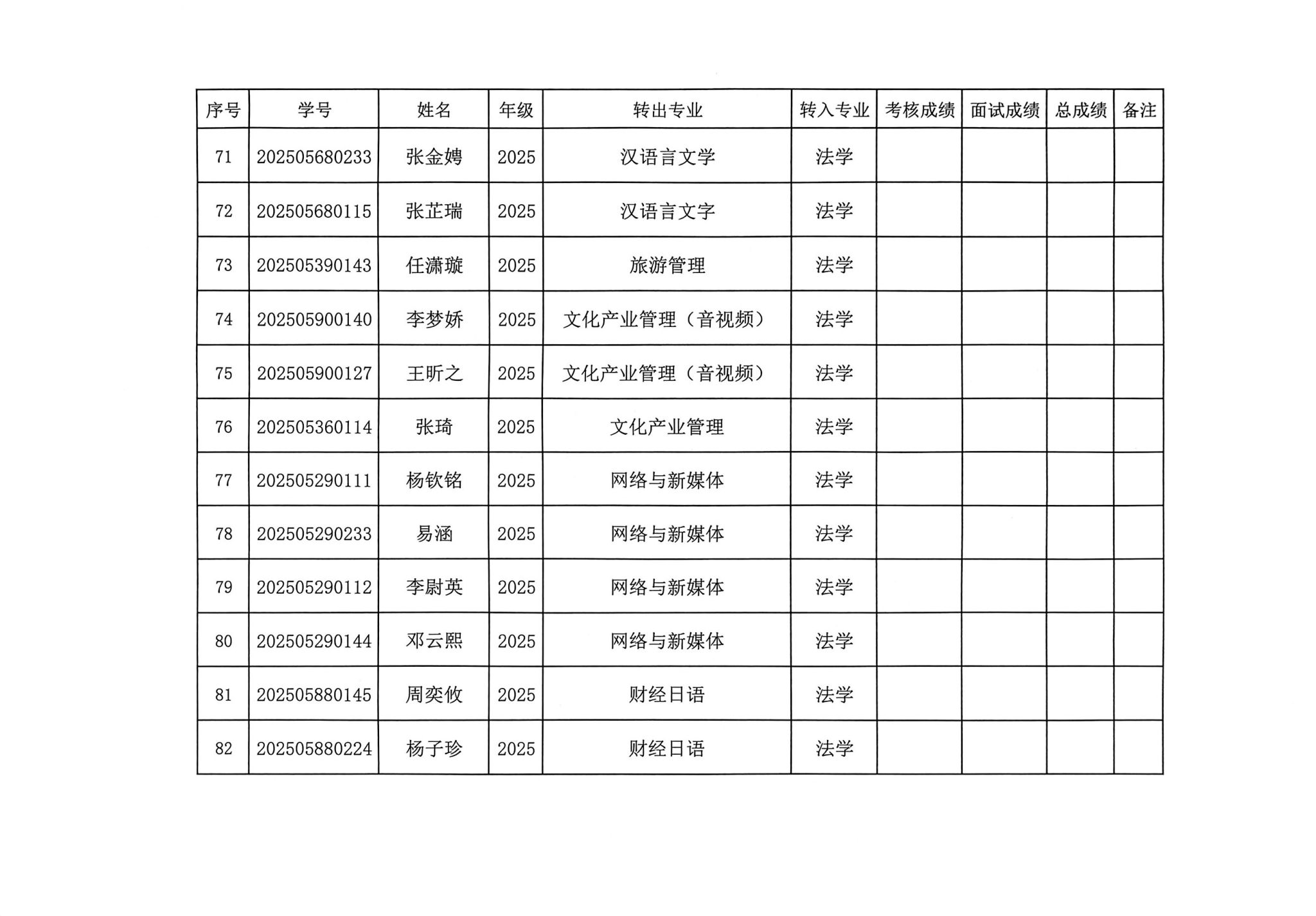 法学与公共管理学院2025级本科生转法学专业拟同意转入名单公示表
