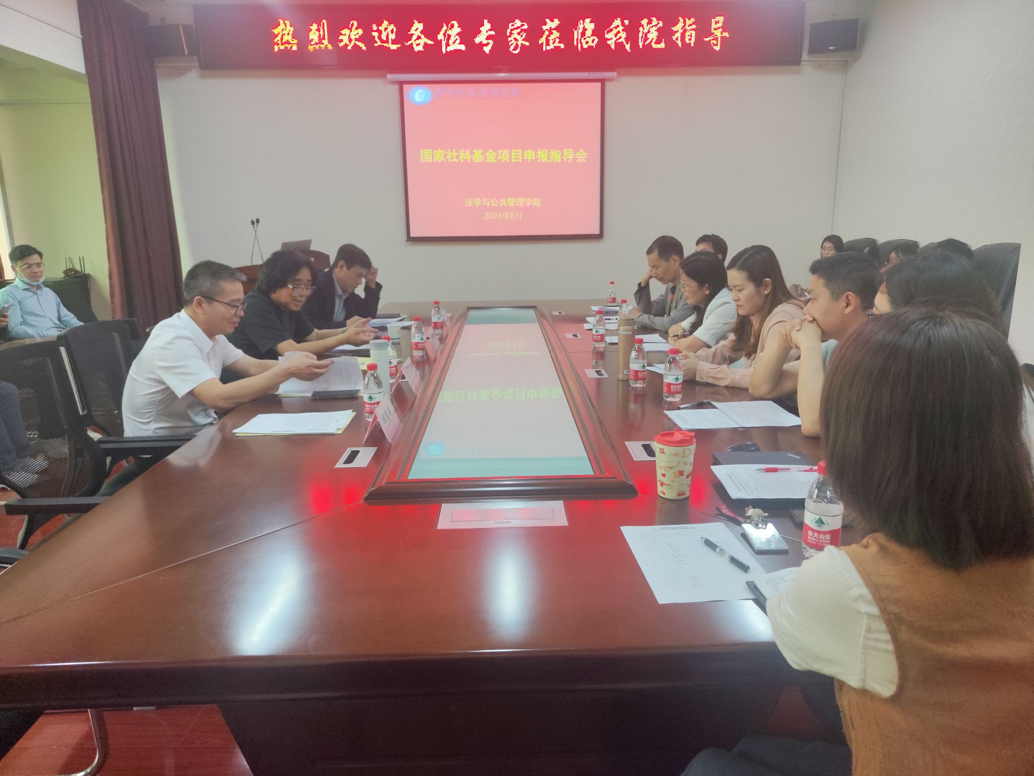 (本网讯)5月7日,法学与公共管理学院在办公楼414-2会议室召开国家社科基金项目申报指导会,会议邀请西南大学王志章教授作项目申报指导,会议由法学与公共管理学院党政负责人何四海书记主持,科研处李勇辉处长出席,姚德超副院长与会,学院拟申报2024年度国家社科基金项目的全体教师参加会议。