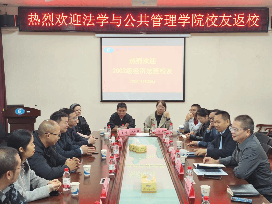 (本网讯)10月26日上午,2002级经济法校友返校座谈会在学院414-2会议室举行。学院领导班子出席,二十余校友代表返校参与座谈会。会议由党委副书记李茂华主持。
