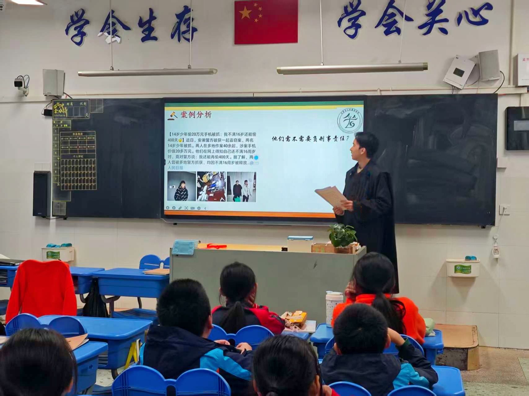 “大家知道以下哪些行为是违法的吗?”“我们身边有哪些法律保护着我们?”……活动伊始,志愿者曾睿康同学通过精心选取的典型案例和通俗易懂的讲解方式,为法治社团的学生们开启了一堂别开生面的法治启蒙课。一系列贴近生活的问题引发了学生们的热烈讨论。在互动环节中,学生们踊跃举手、积极发言,在轻松愉快的氛围中掌握了基础法律知识,法治意识的种子在潜移默化中生根发芽。