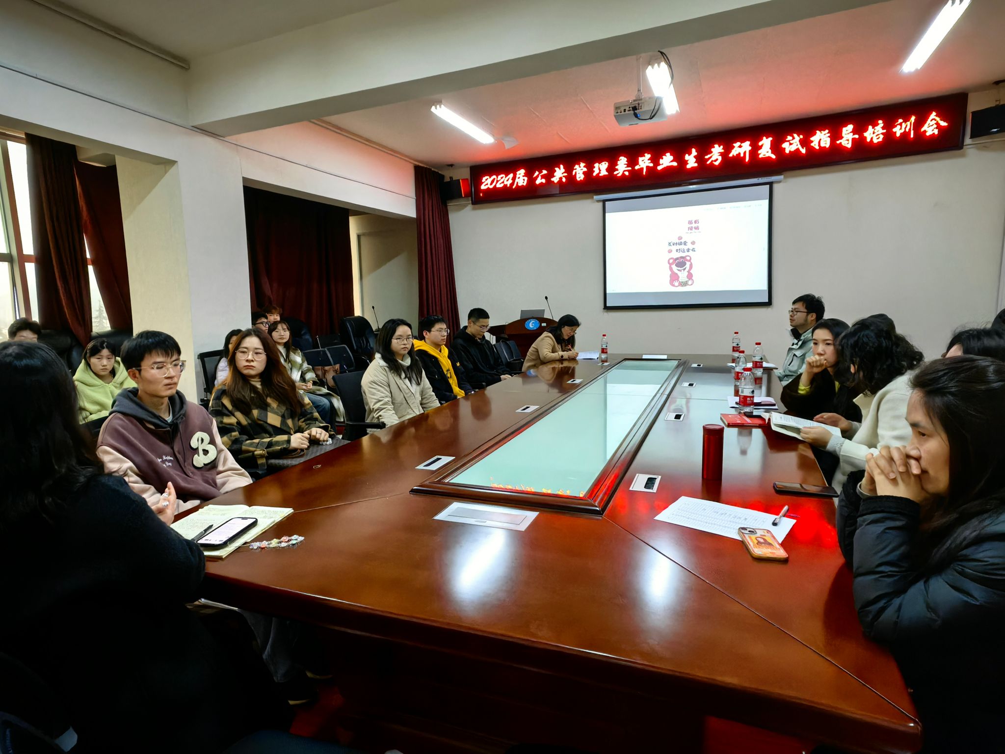 会议分别从复试备考方法、面试技巧、调剂注意事项等方面对考研学生进行指导。与会老师建议,复试备考要关注报考院校专业导师的研究方向,并围绕参考书目借助中国知网、专著等拓展学习专业知识;面试要保持良好的精神风貌和仪容仪表,谈吐自信大方、逻辑清晰、表达流利。随后老师们结合实例讲解了面试技巧和要点,并强调了调剂过程信息获取的重要性,分享了调剂信息收集的渠道。往届上岸学姐以亲身经历为例,向同学们分享了自己复试和调剂的经验。最后,老师们预祝同学们成功上岸,希望同学们最后阶段要稳住心态,一战“上岸”。