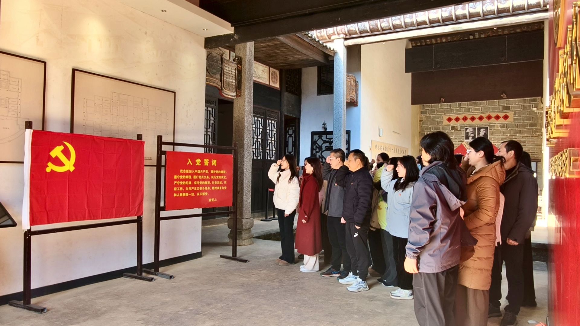 参观结束后,全体党员在旧址面向鲜红的中国共产党党旗,大家重温入党誓词。“我志愿加入中国共产党……”铿锵有力的誓言在红色旧址上空久久回荡,精准传递出师生党员不忘初心、牢记使命,为党的事业不懈奋斗的坚定决心。
