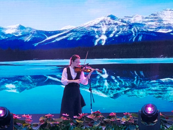 小提琴独奏《新疆之春》,张亚男老师巧妙地用小提琴与钢琴的碰撞,将祝福毕业生的千言万语,蕴含到热烈、欢快、富有激情的音乐曲调之中。这首民族风格浓郁的维吾尔族小提琴曲,活泼鲜明的节奏,酣畅淋漓的演奏,让台下观众如痴如醉,领略到高雅艺术的魅力。