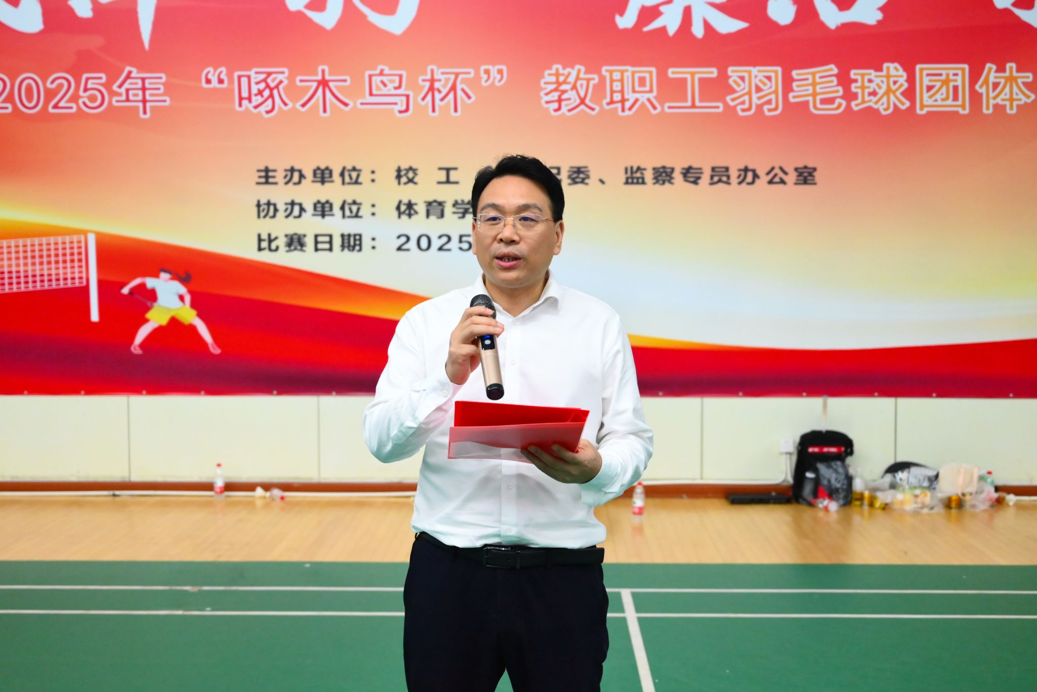李雪山在开幕致辞中指出,本次比赛创新融合健康管理与廉洁教育理念,以赛事为桥梁纽带,打造特色活动平台,号召全体教职工积极参与体育锻炼,以强健的体魄筑牢立业之基,以饱满的精神凝聚奋进之力,以清正的作风涵养浩然之气,共同书写学校高质量发展新篇章。
