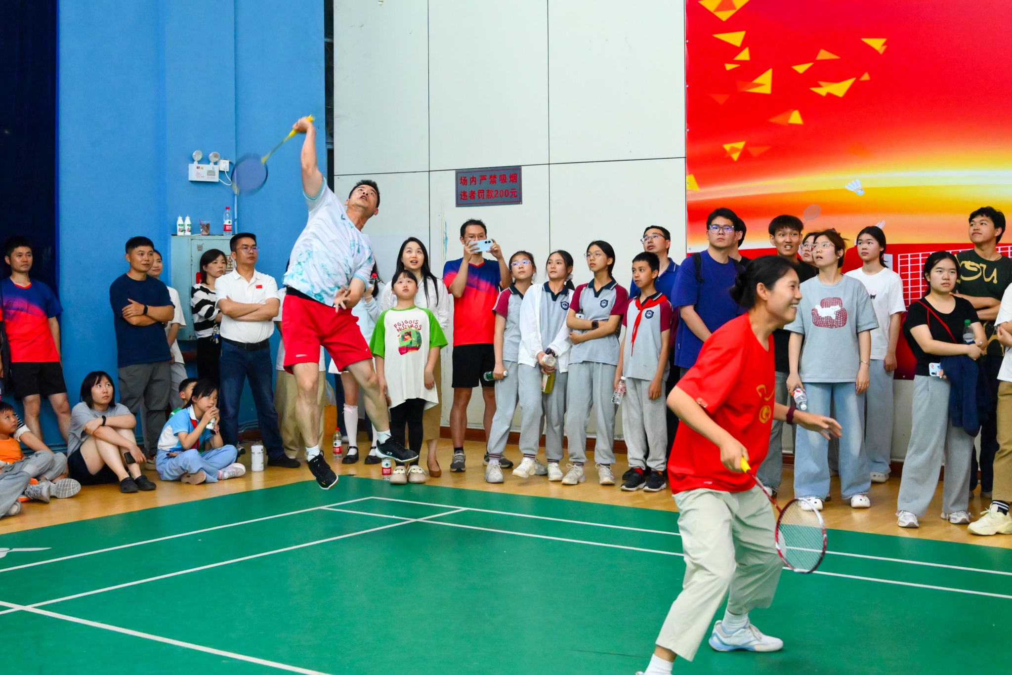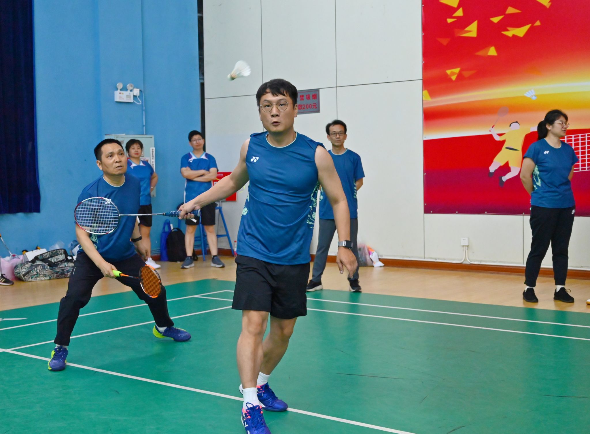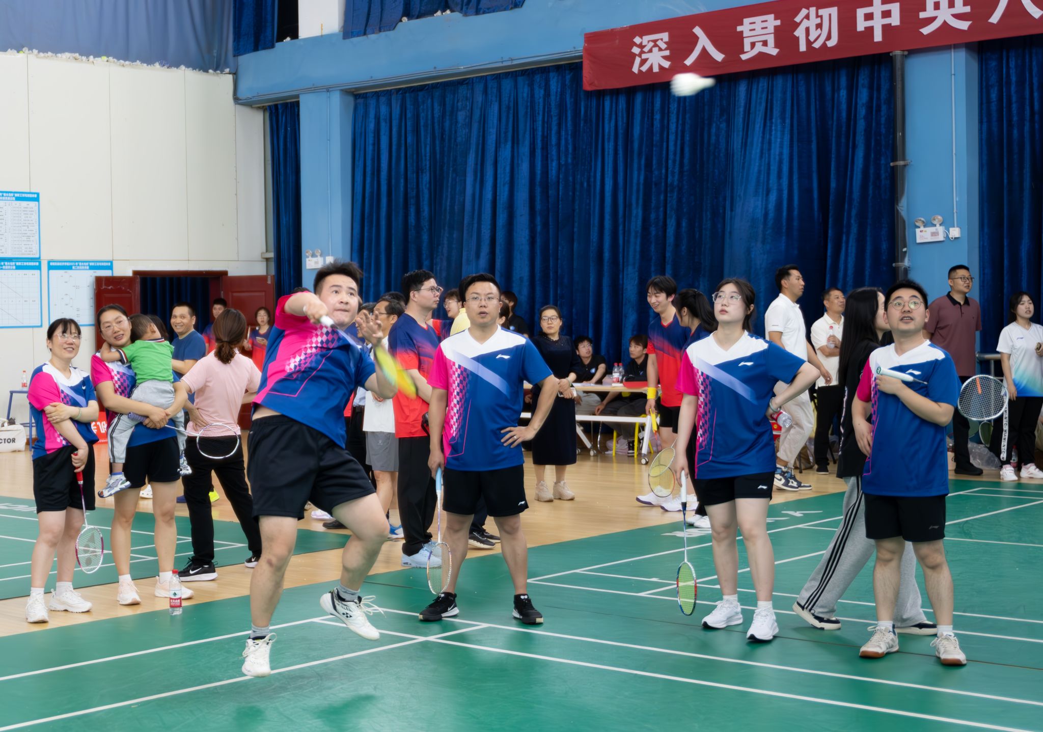 本次比赛创新设置廉洁知识竞答环节,以寓教于赛的形式弘扬崇廉尚洁之风。赛事采用混合团体赛制,设有男单、女单、男双、女双、混双五个项目,通过淘汰赛与决赛层层递进,赛程紧凑、对决激烈。赛场上,参赛队员们配合默契,时而腾空跃起、强力扣杀,时而轻盈吊球、巧妙搓网,充分展现了团结协作、奋勇拼搏的体育精神;赛场下,加油声、呐喊声此起彼伏,凝聚成鼓舞士气的强大力量。