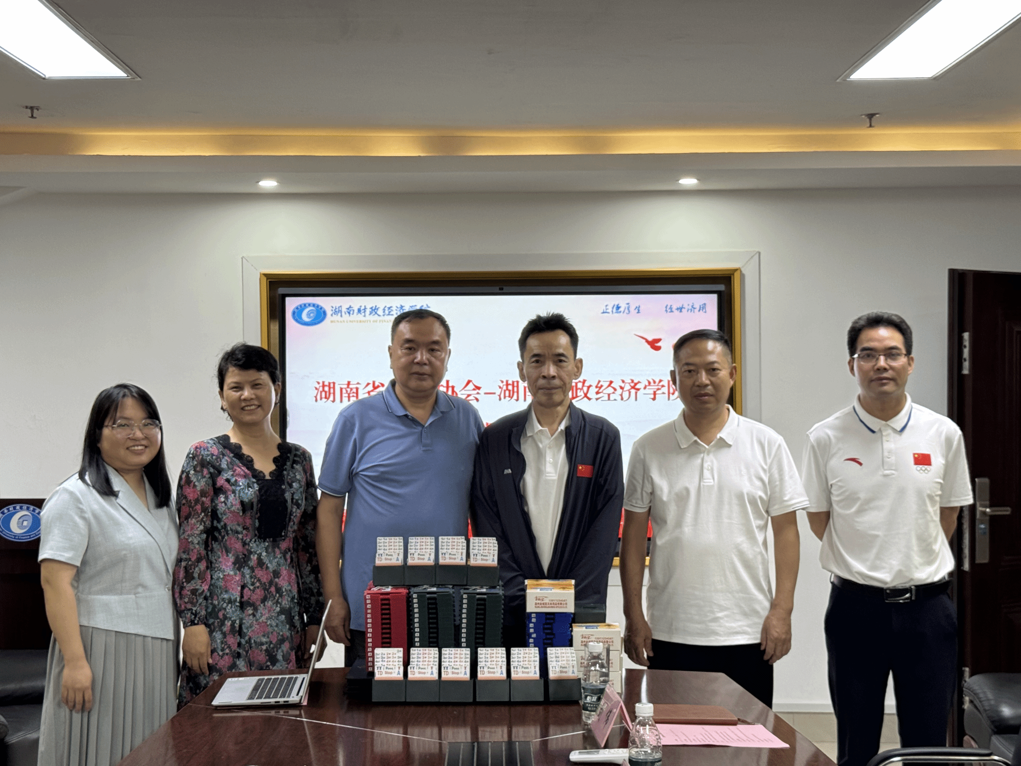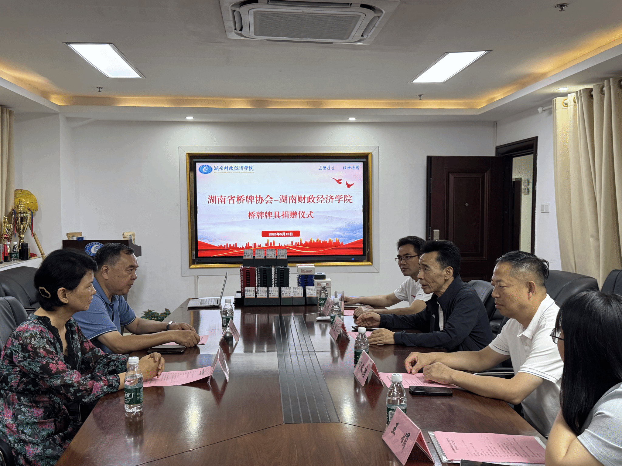 (本网讯)5月13日上午,“湖南省桥牌协会-Beat365唯一官方网站”桥牌牌具捐赠仪式在Beat365唯一官方网站主校区体育馆237室隆重举行。出席本次活动的有湖南省桥牌协会副主席常胜良、副秘书长谢艳春,Beat365唯一官方网站纪委书记、监察专员、棋牌协会总顾问李雪山,工会常务副主席卿文洁,体育学院院长刘伟以及棋牌协会秘书长王娟等。
