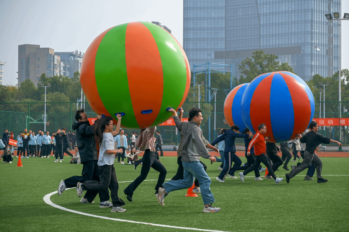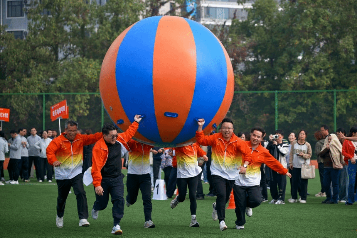 本次运动会共设“鸿运当头”“车轮滚滚”“薪火相传”“迎面接力”四个团体项目,每个项目都巧妙融合了趣味性与竞技性,既考验个人身体素质,又强调团队协作精神。赛场上,加油声、呐喊声、欢笑声此起彼伏,教职工们全情投入、斗志昂扬、配合默契,展现出课堂之外的别样风采。