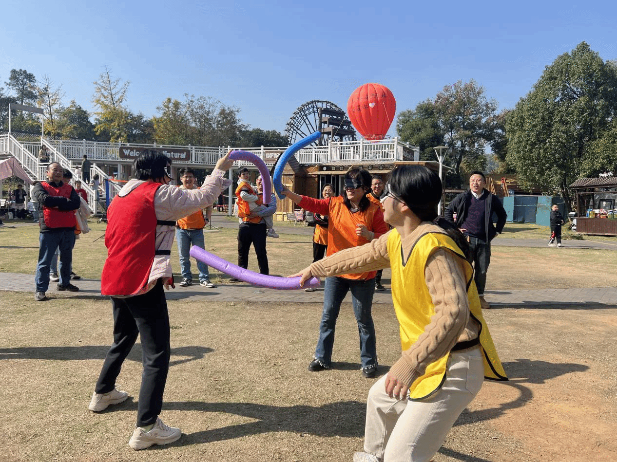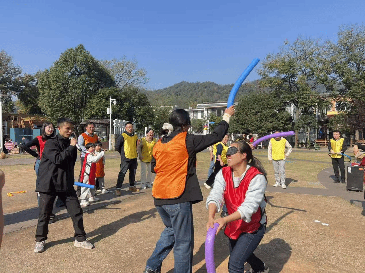 在比赛环节中,通过“夹乒乓球接力赛”“合力建塔”“蒙眼互打”等团队建设项目,展现了教职工课堂之外的别样风采。各小组成员为团队荣誉而战,充分交流、团结协作、各显神通,携手克服困难、突破关卡,共同分享成功的喜悦。初冬微寒,却难掩教职工的参与热情,进一步拉近了彼此间的距离,团队精神在真诚的帮助中得以升华。现场的加油声、欢笑声交织一片,将活动氛围推向高潮。