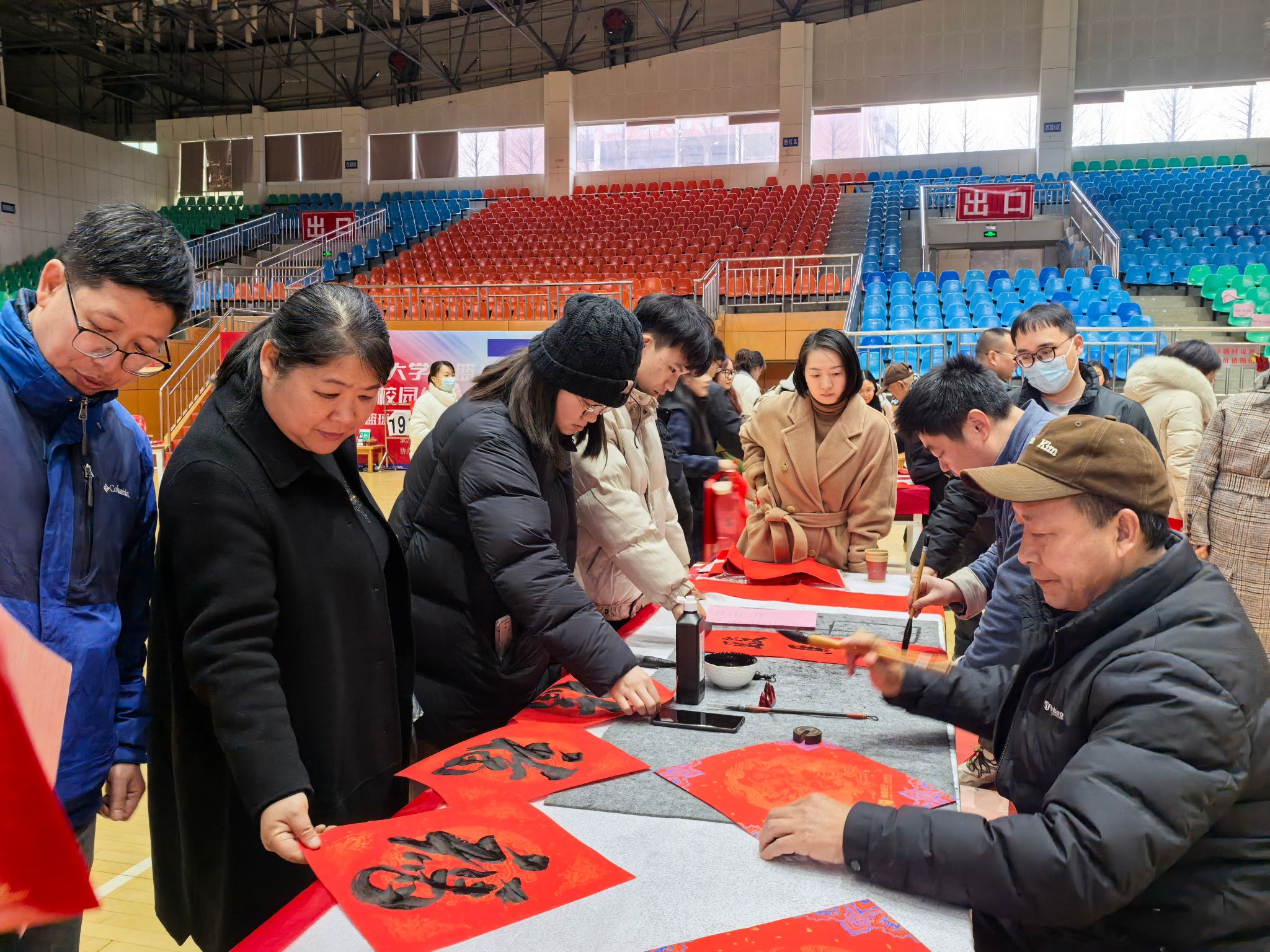 (本网讯)1月19日上午,校工会联合湖南银行长沙财院社区支行,在学校体育馆主馆成功举办“万福骏临 书法赐福”新春主题活动,副校长、工会主席刘钟理出席活动,200余名教职工踊跃参与本次活动。