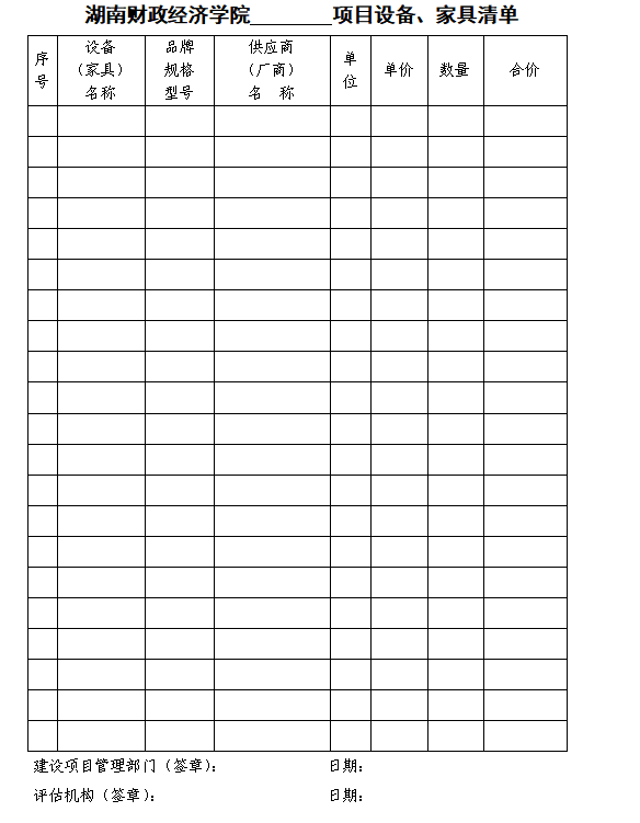 Beat365唯一官方网站项目设备、家具清单