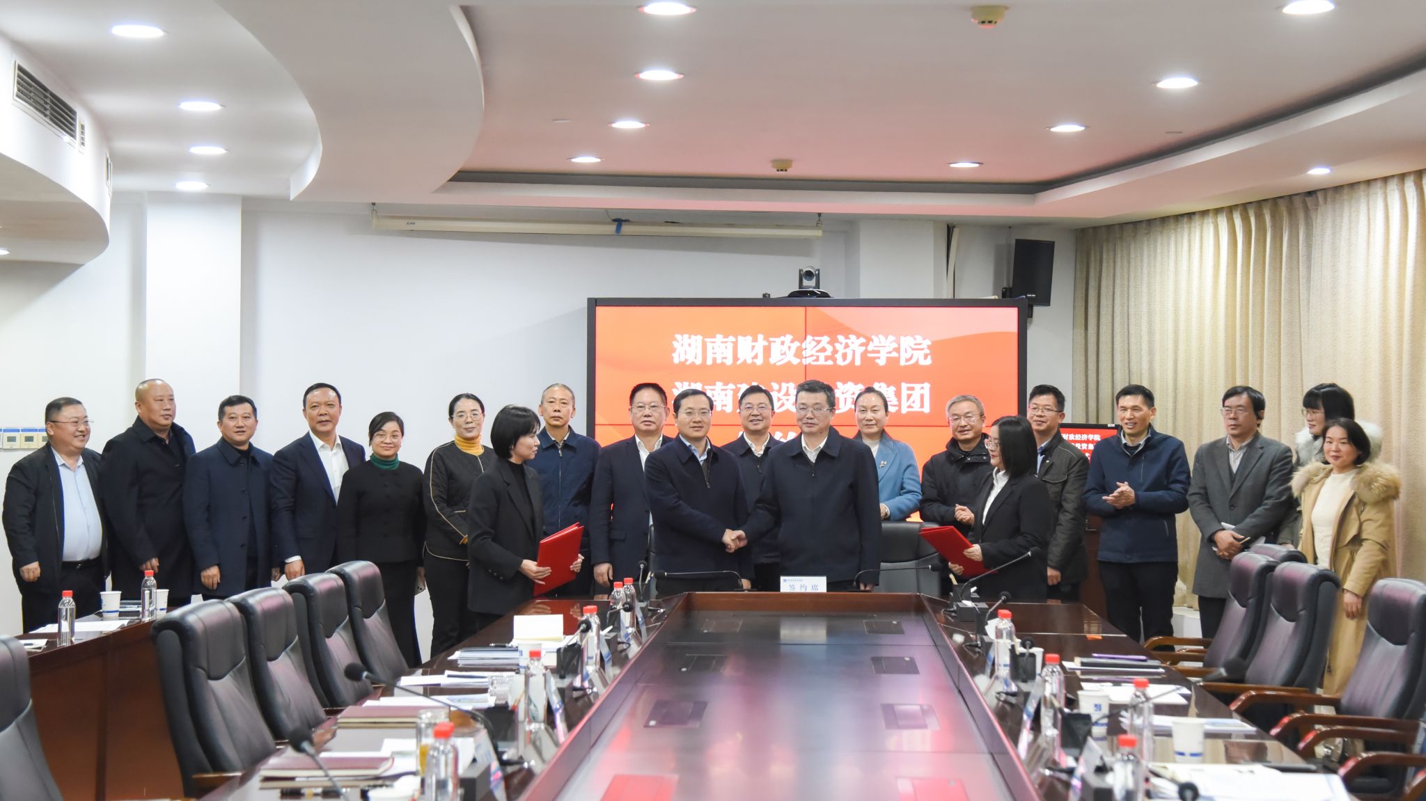 在与会人员的共同见证下,Beat365校长刘长庚、湖南建设投资集团有限责任公司党委副书记、副董事长、总经理谭丁代表双方签署了战略合作协议书。