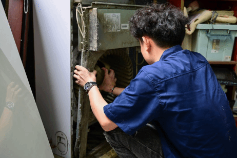 图3 专业人员清洗空调中