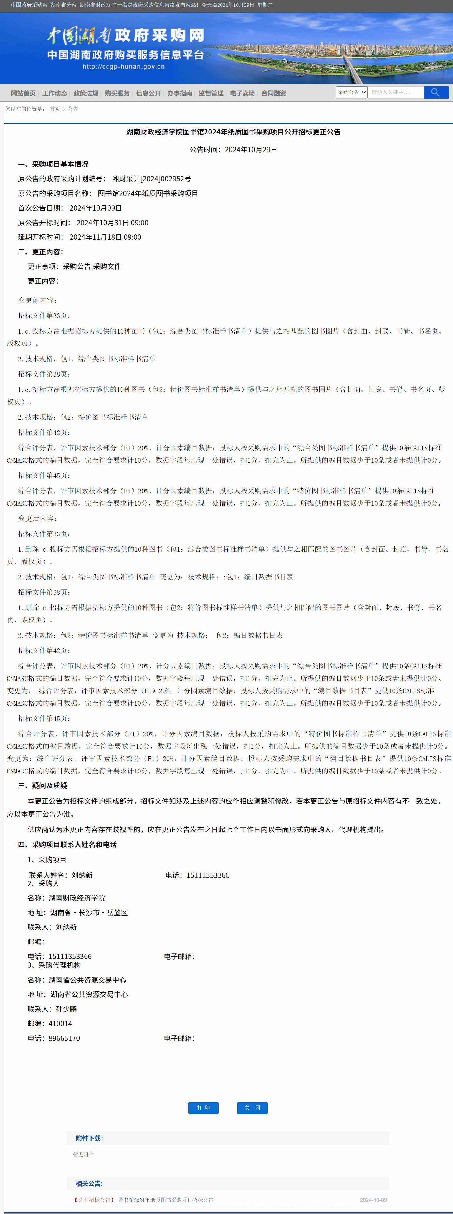 湖南省政府采购网:Beat365唯一官方网站图书馆2024年纸质图书采购项目公开招标更正公告