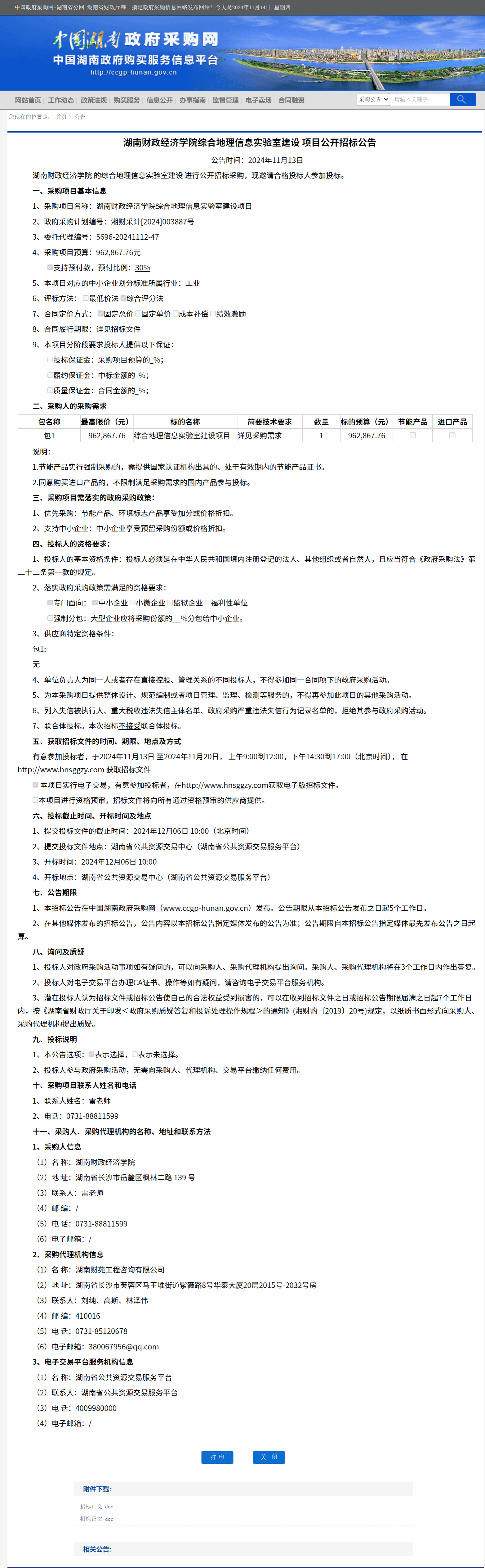 湖南省政府采购网:Beat365唯一官方网站综合地理信息实验室建设项目公开招标公告