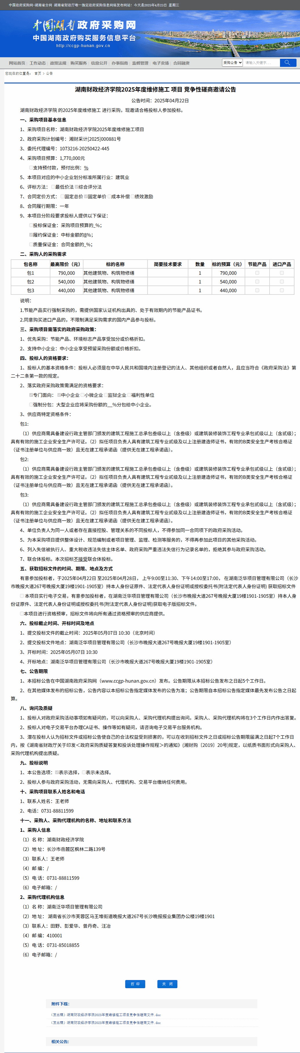 湖南省政府采购网:Beat365唯一官方网站2025年度维修施工项目竞争性磋商邀请公告