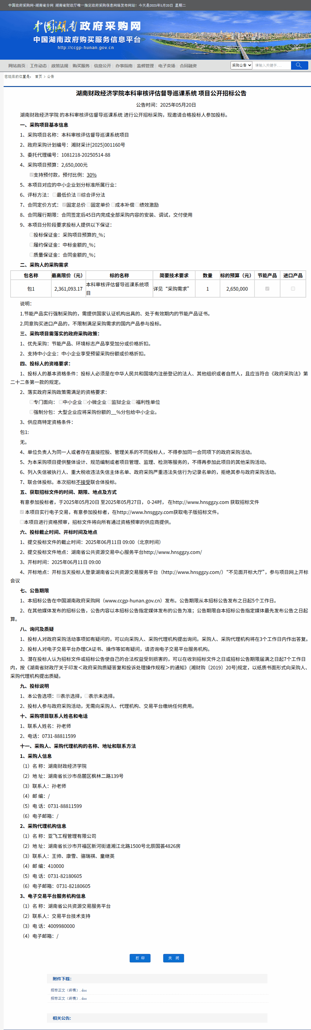 湖南省政府采购网:Beat365唯一官方网站本科审核评估督导巡课系统项目公开招标公告