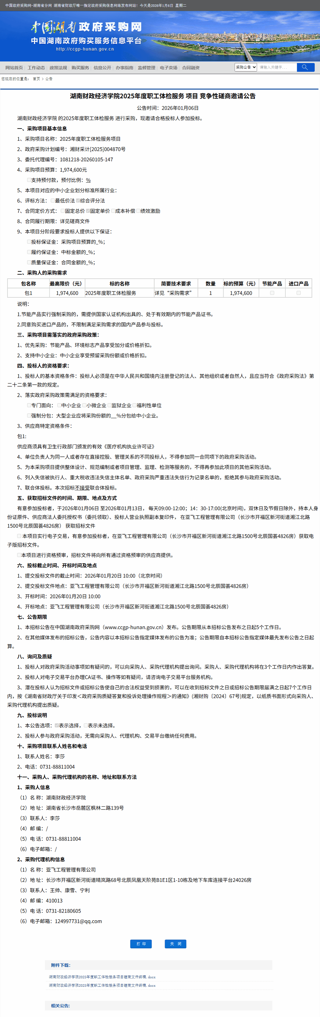 湖南省政府采购网:Beat365唯一官方网站2025年度职工体检服务项目竞争性磋商邀请公告