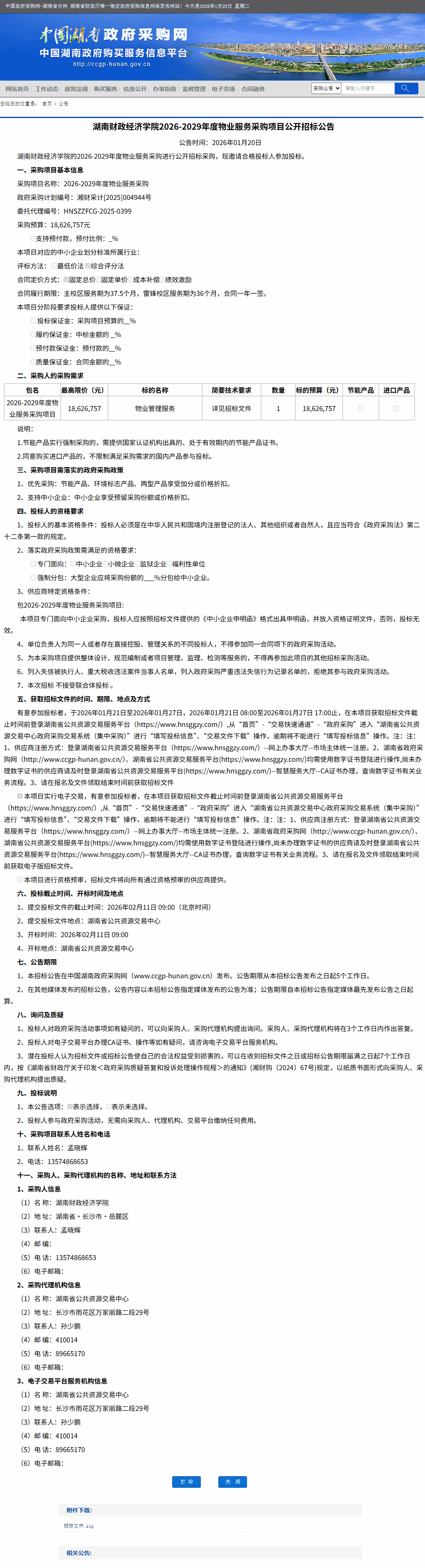 湖南省政府采购网:Beat365唯一官方网站2026-2029年度物业服务采购项目公开招标公告