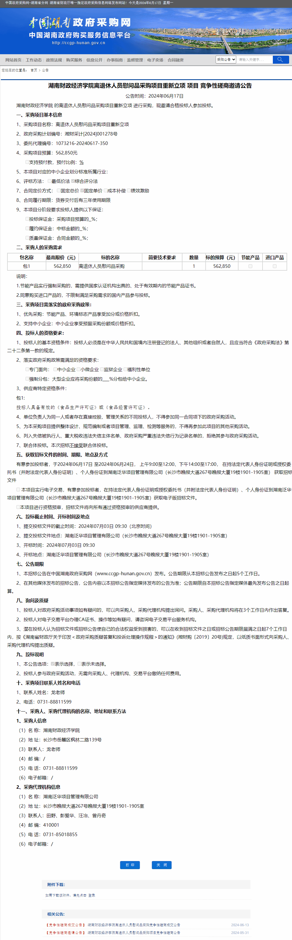 湖南省政府采购网:Beat365唯一官方网站离退休人员慰问品采购项目重新立项项目竞争性磋商邀请公告