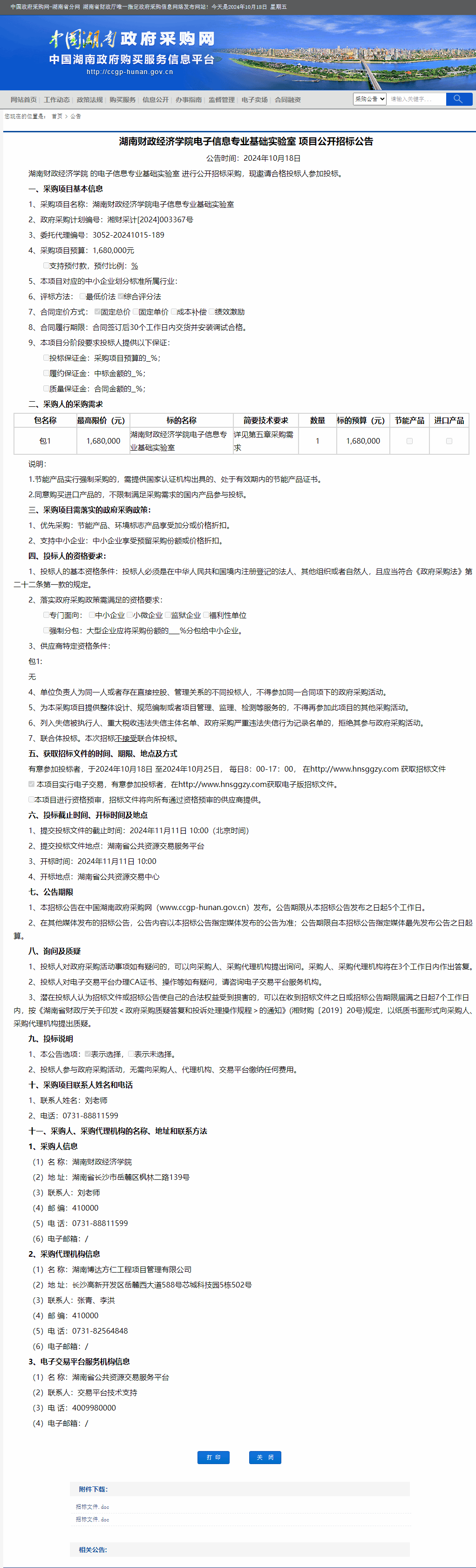 湖南省政府采购网:Beat365唯一官方网站电子信息专业基础实验室 项目公开招标公告